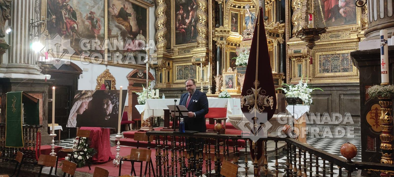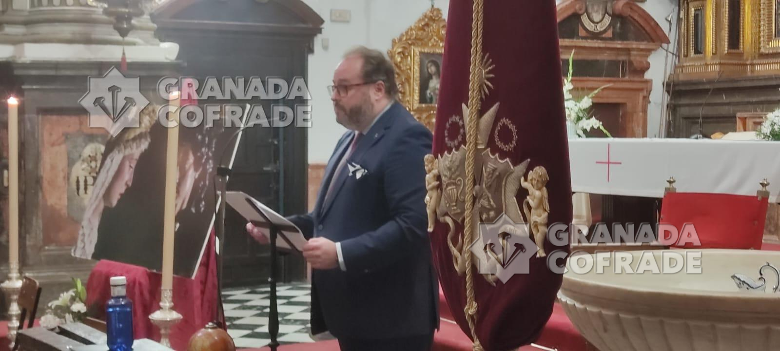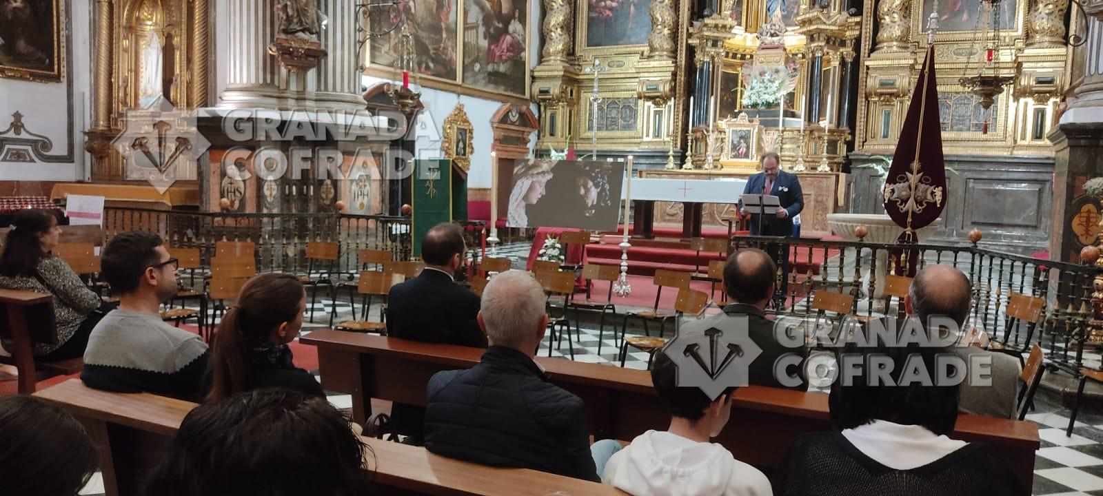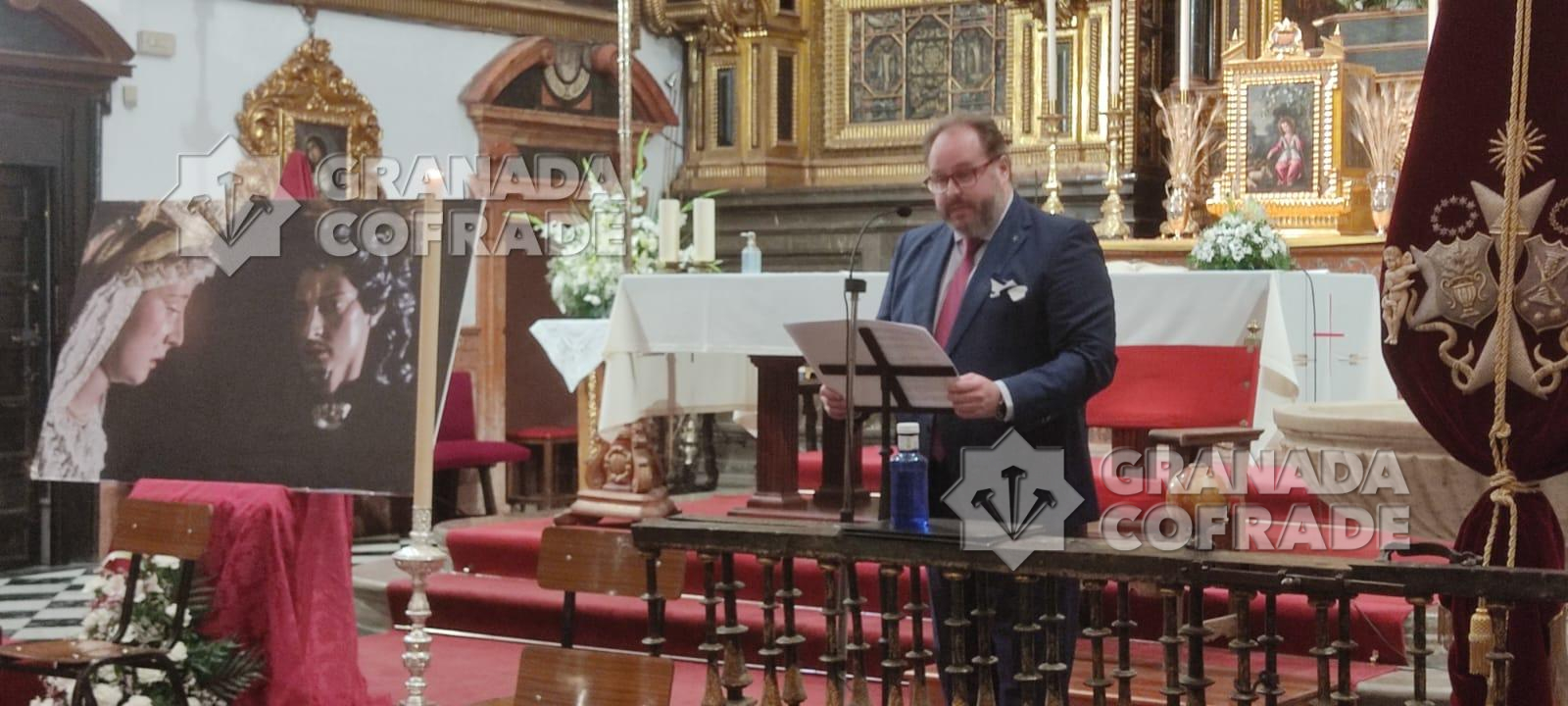 La exaltación «escrita desde este otoño» recordó vivencias del Domingo de Ramos, de barrios de Granada y de recuerdos, «sollozos de un niño» y de «hermana a hermana» para referirse a la devoción a la Virgen de la Victoria y a la del Dulce Nombre en la misma noche del Domingo con el que se inicia la Semana Santa. Álvaro Barea recordó la procedencia cordobesa de la Virgen del Dulce Nombre y de Jesús Despojado, imágenes salidas del taller de González Jurado de la ciudad de la Mezquita. La Virgen de la Esperanza o la Piedad de Miguel Ángel unieron sus recuerdos al nombre de su madre y sus recuerdos junto a ella. Habló de las manos de la Virgen del Dulce Nombre y de San Juan Evangelista «que se buscan y se encuentran». Poesías y prosa dedicadas a esta advocación «que con san Juan vas confortada» en la exaltación que fue muy aplaudida por el público que llenó el templo de la plaza de la Universidad.