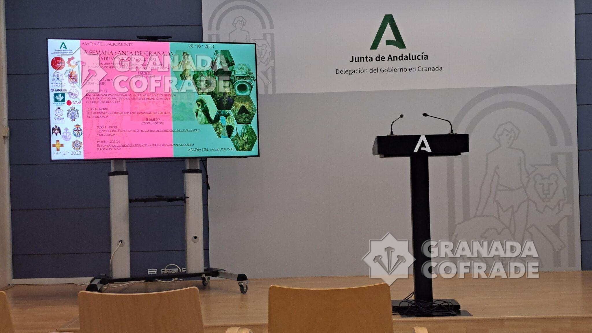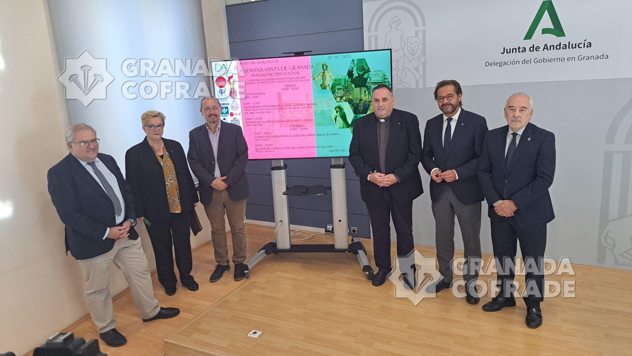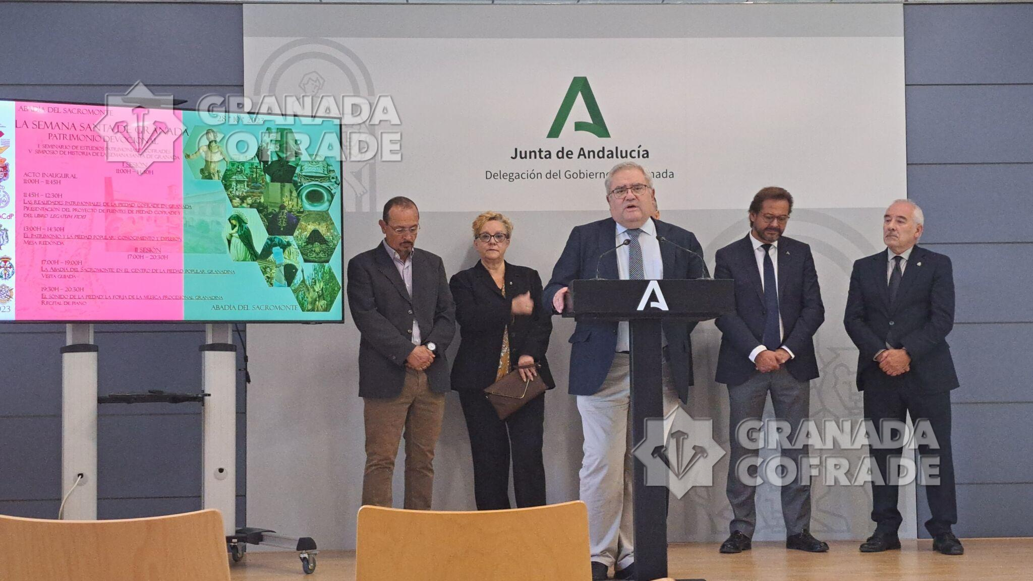 Los delegados de Gobierno, Antonio Granados y de Turismo, Cultura y Deporte, Fernando Egea, acompañados entre otros del presidente de la Federación de Hermandades y Cofradías, Armando Ortiz han presentado la celebración del I Seminario de Estudios Patrimoniales Cofrades y el V Simposio de Historia de la Semana Santa de Granada titulado ‘La Semana Santa de Granada: patrimonio devocional’, apoyados científicamente por el Centro de Estudios Andaluces, que se celebrará el sábado 28 de octubre en jornada de mañana y tarde en la Abadía del Sacromonte.