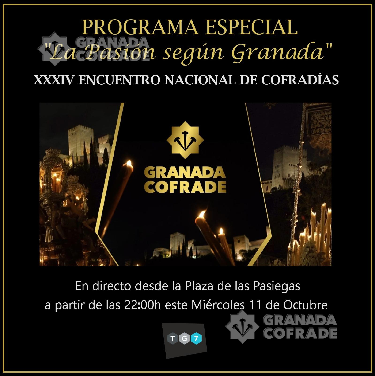 .- GRANADA COFRADE. Hoy, 22.00 horas, Televisión Municipal de Granada, TG7. Toda la información cofrade en la Televisión Pública de Granada.