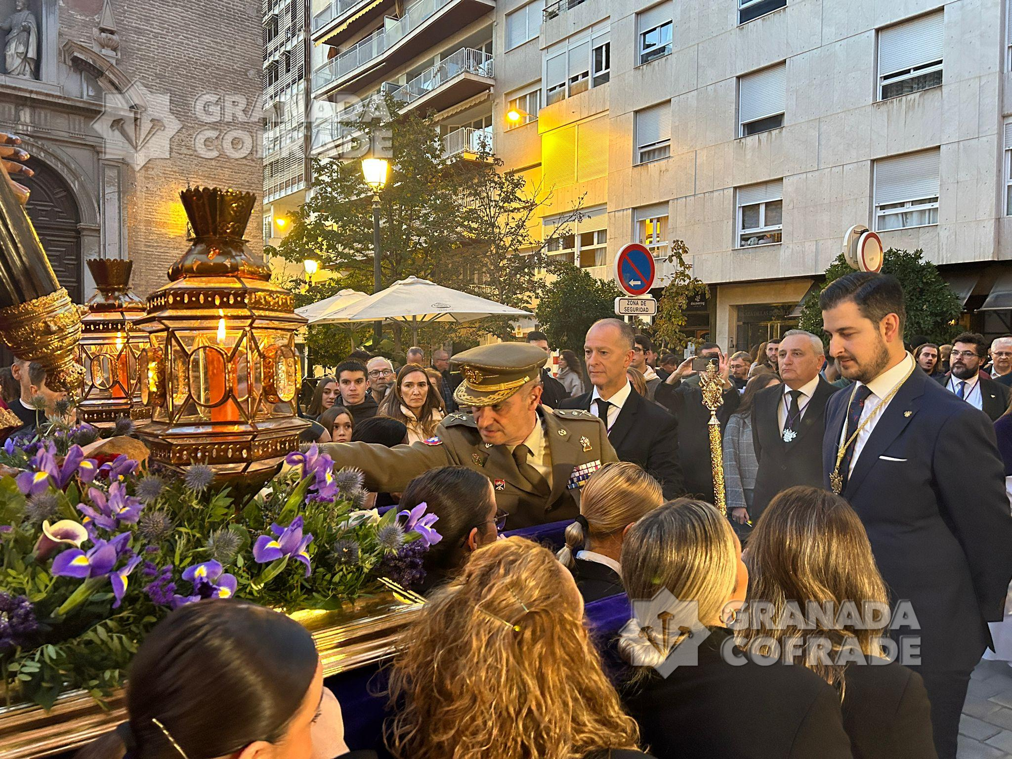 Se vivieron momentos entrañables como el paso del cortejo frente al Madoc, donde fue recibido por autoridades militares, realizando una «llamá» en las andas o también el vivido en el interior de la iglesia de San Miguel Bajo y la entrada de ambas imágenes en su interior situándose junto al Cristo del Perdón y la Virgen de la Aurora.