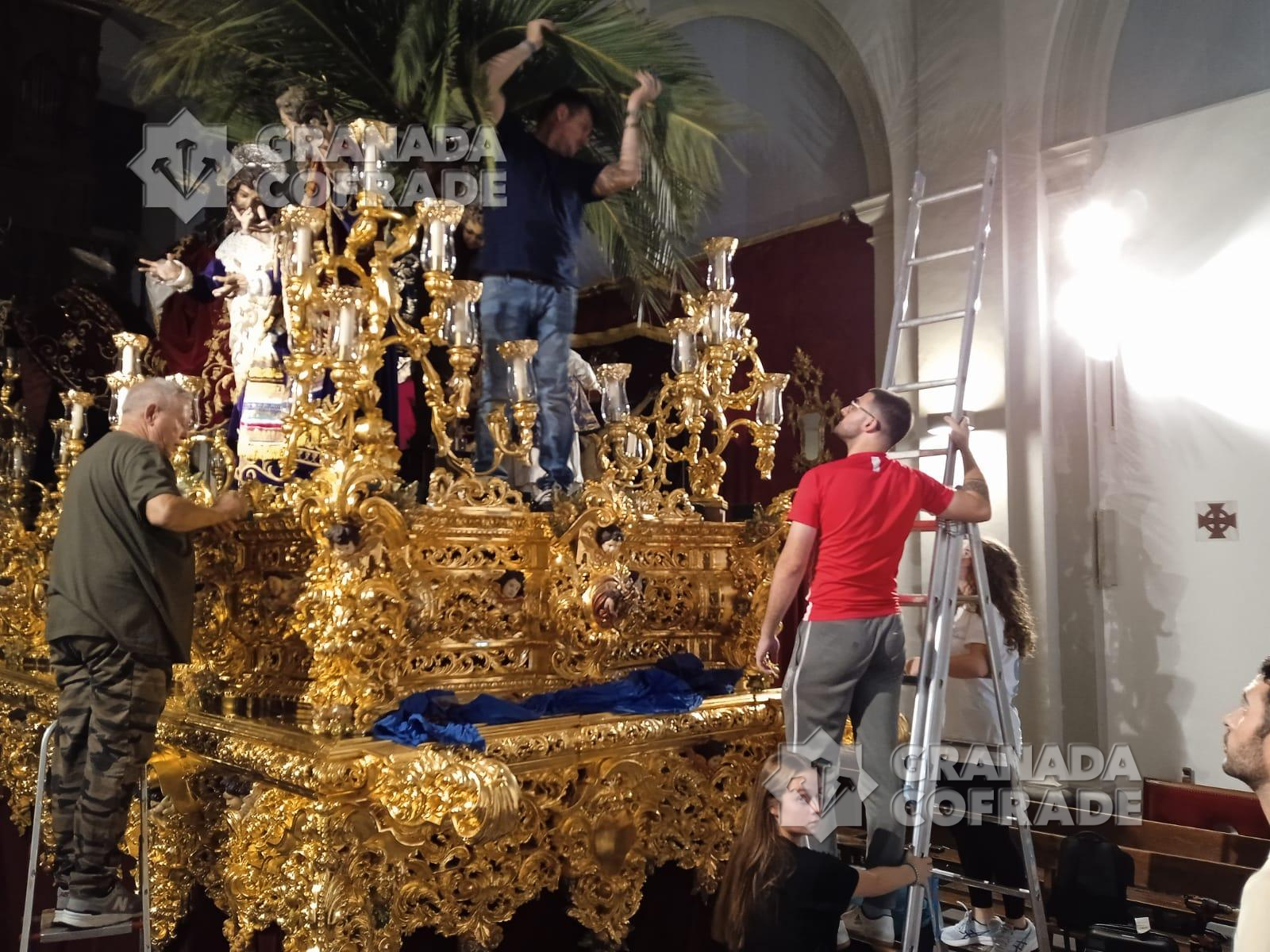 Se afanaban anoche los hermanos y el equipo de priostía de la hermandad de la Entrada de Jesús en Jerusalén en colocar la palmera que marca el comienzo cada año de una nueva Semana Santa. Hoy, 11 de octubre, con un Domingo de Ramos tardío o adelantado -según se mire- Granada volverá a dejarse acariciar por la palmera del paso de misterio de la parroquia de San Andrés. Detrás, irán los pasos a la Catedral de Jesús Despojado, Jesús de la Pasión, Señor de la Meditación, María Santísima del Sacromonte y Nuestro Padre Jesús de la Sentencia.