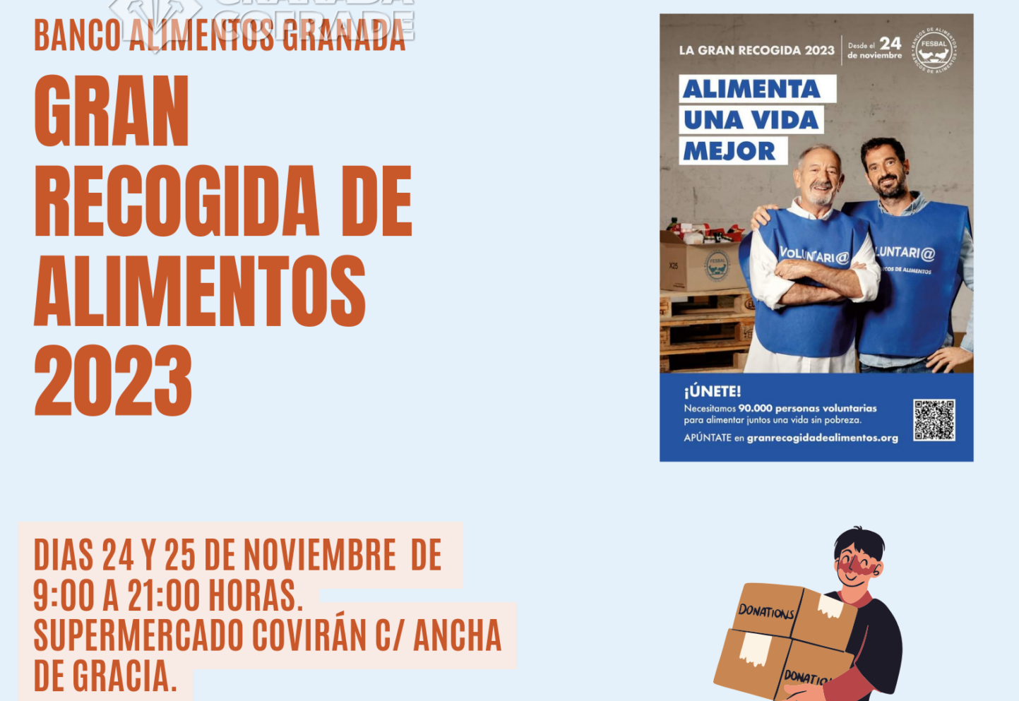 Un año más la Archicofradía de María Auxiliadora de la Alhambra colaborará con el Banco de Alimentos de nuestra ciudad en la Gran Recogida. Se celebrar este fin de semana en todo el territorio nacional y en concreto los voluntarios de la Adma-Alhambra estarán durante hoy viernes día 24 y el sábado 25 de noviembre en el establecimiento Covirán de la Calle Ancha de Gracia, en horario de 9 a 21 h. Desde la Adma solicitan todo tipo de colaboración para «Ayudadnos a ayudar».