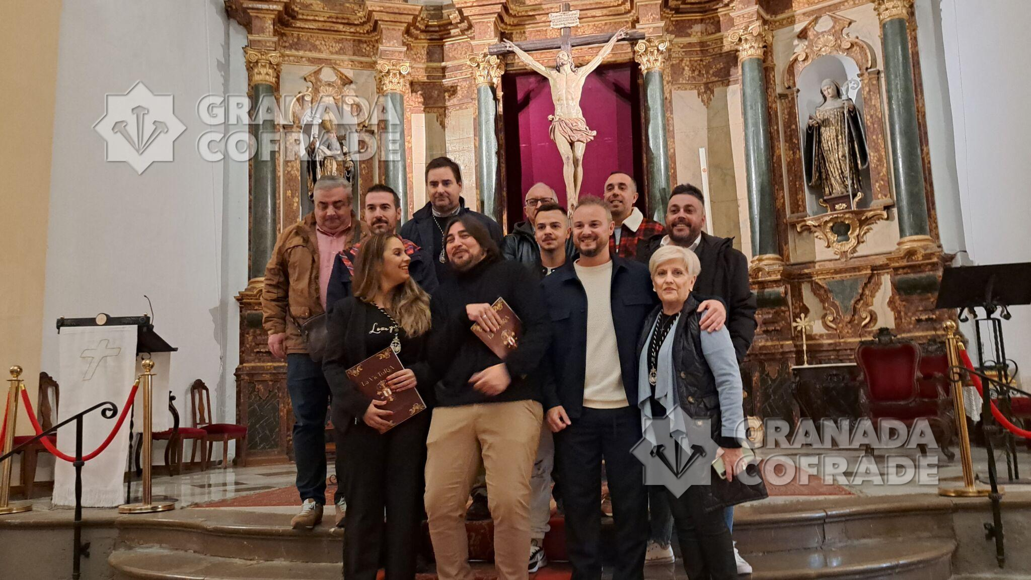 Ante la presencia de varios hermanos de la cofradía, el teniente de hermano mayor, Rafael Varela Garrido, y miembros de la formación musical se procedió a la firma del contrato y posterior foto de familia ante el Santísimo Cristo de la Expiración.