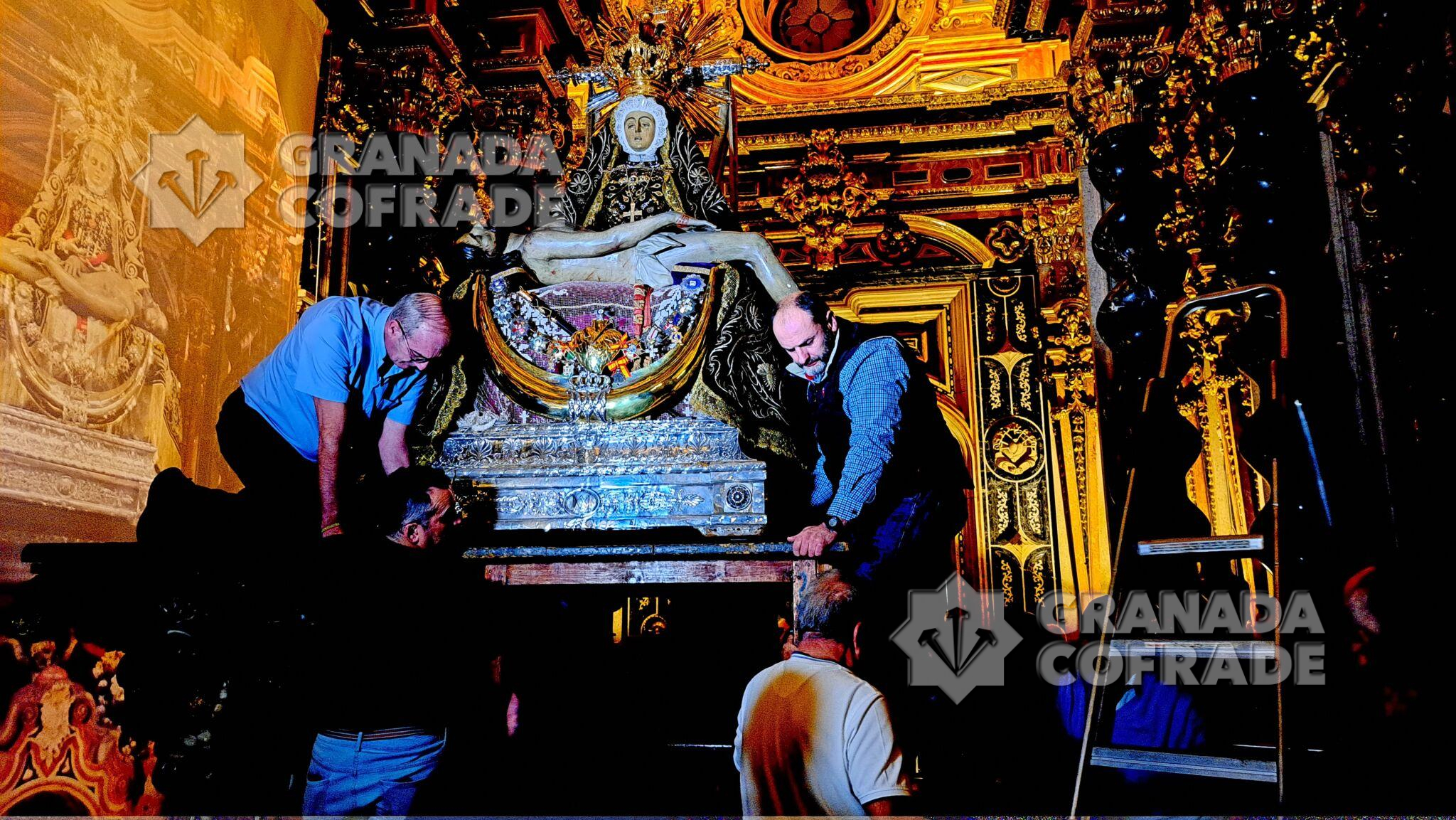 Silencio, recogimiento y oración en el camarín para bajar a la Virgen e iniciar hoy los primeros trabajos
