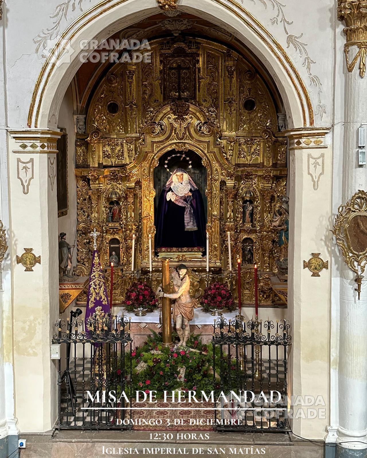 Por otra parte, y con motivo de la festividad de la Inmaculada Concepción de María, los próximos días 5, 6 y 7 de diciembre, la Hermandad de la parroquia de San Matías celebrará Solemne Triduo en Honor a María Santísima de las Penas, dando comienzo a las 19:00 con el siguiente orden: Santo Rosario, Ejercicio de Triduo y Santa Misa. El viernes 8 de diciembre, a las 12:30 horas, tendrá lugar la Función Principal en honor a María Santísima de las Penas y durante la jornada estará expuesta en besamanos en horario de 10:30 a 12:00 y de 16:30 a 20:00 horas.