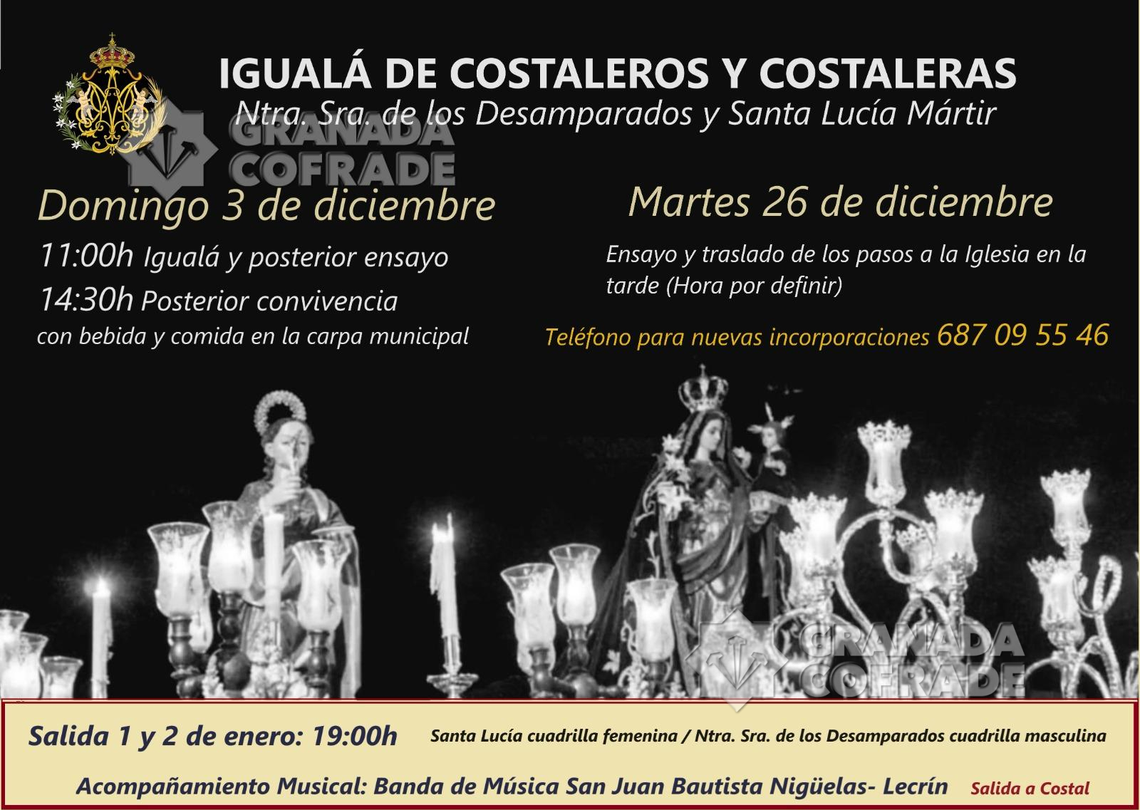 El paso de Santa Lucía Mártir es portada por mujeres a costal capitaneadas por Miguel Pérez y el paso de Ntra. Sra. de los Desamparados es portada por hombres a costal capitaneados por Ibán Serafín de Haro. Las personas interesadas en pertenecer a la cuadrilla pueden ponerse en contacto a través del 687095546 y la salida será el 1 y 2 de enero, acompaña musicalmente la Banda de Música San Juan Bautista Nigüelas-Lecrín.