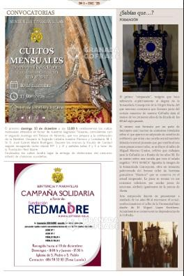 Noticias, actividades, convocatorias, lotería de Navidad, cultos y liturgia y las palabras del consiliario de la cofradía, José Gabriel Martín, forman parte del contenido de este primer número.