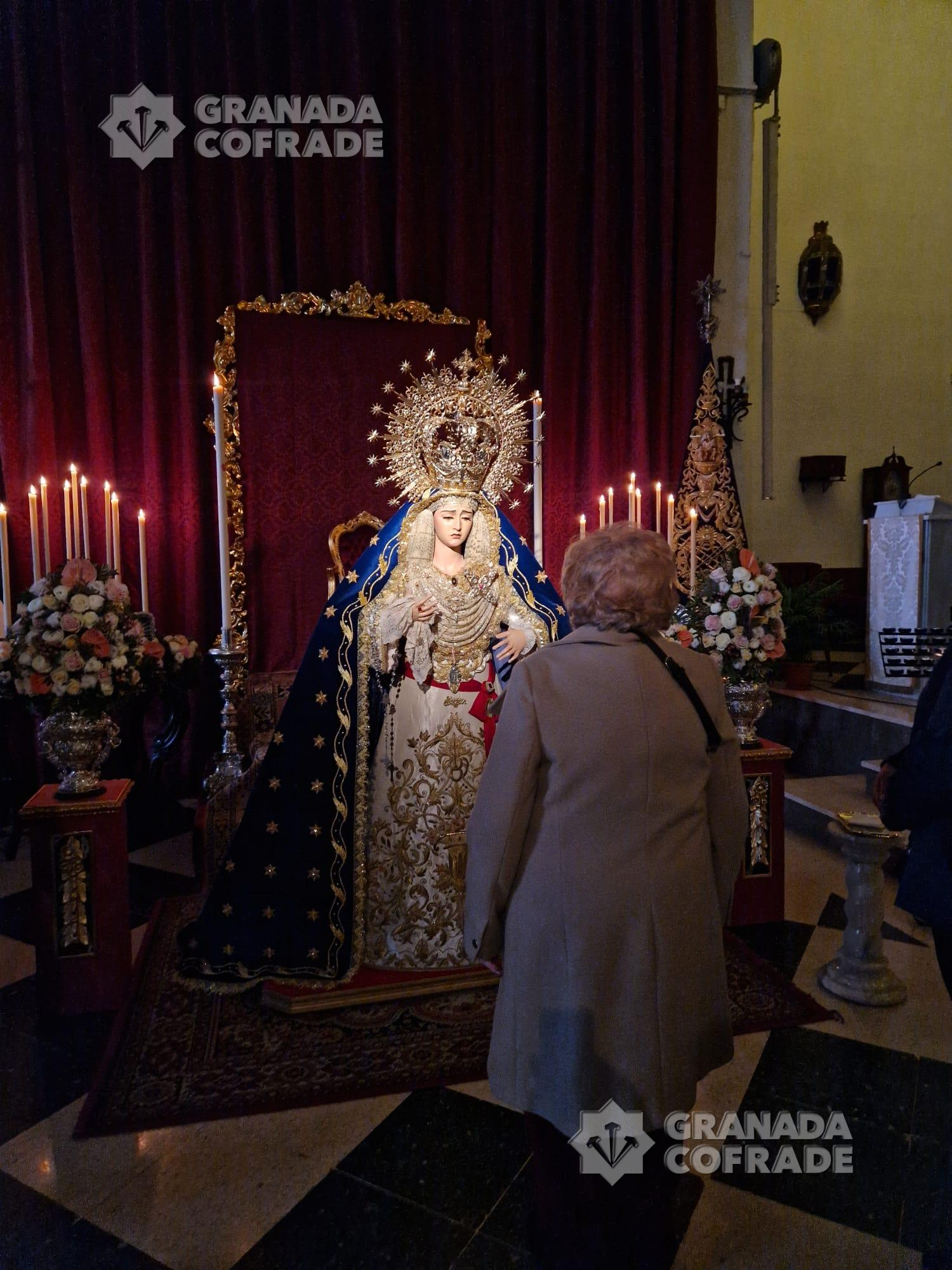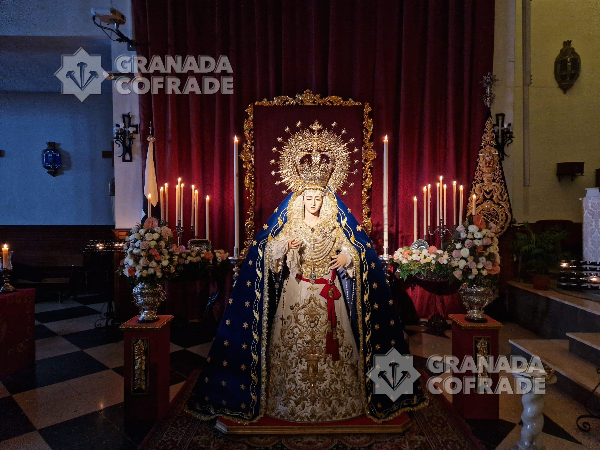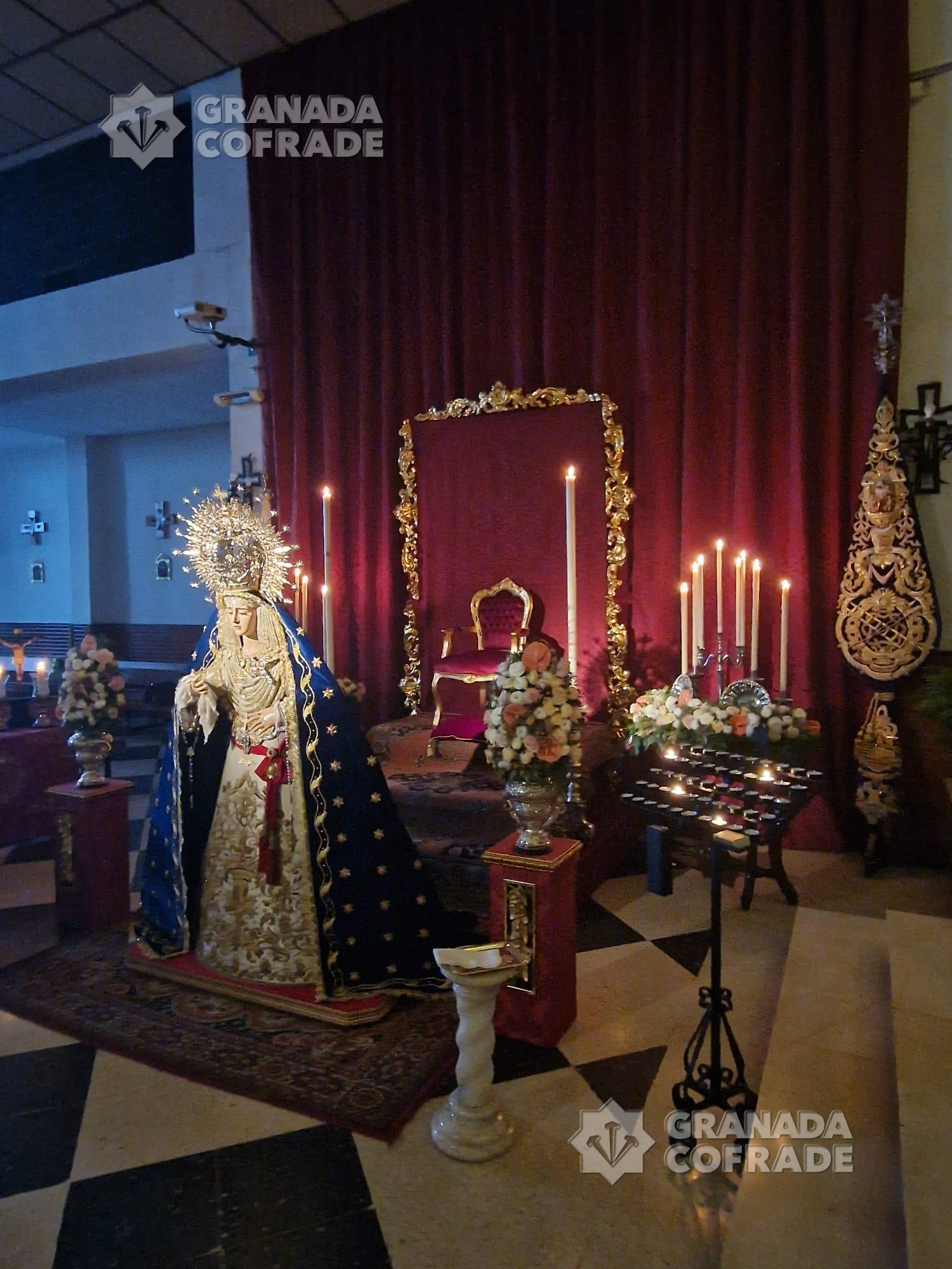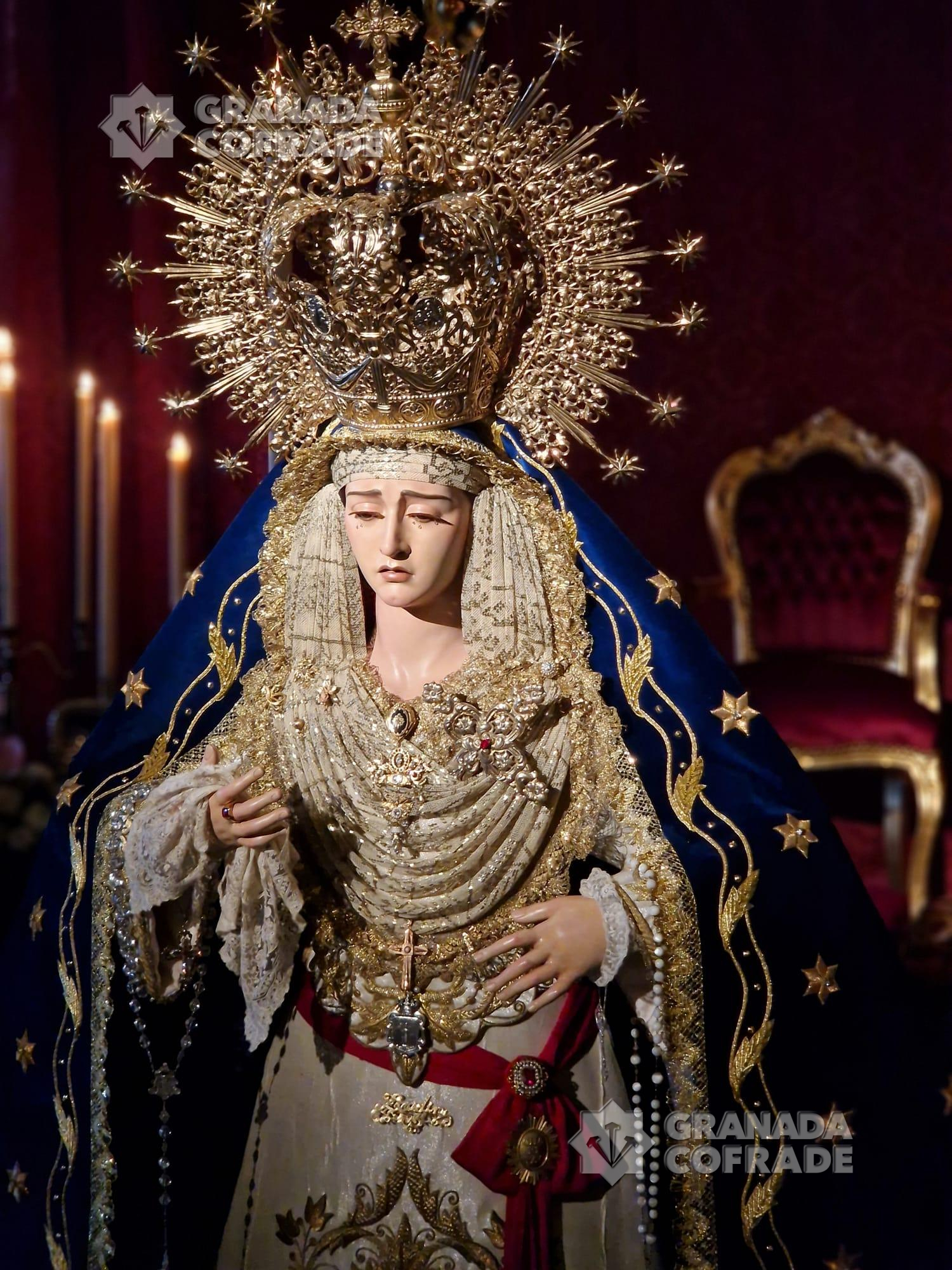 Durante la jornada de ayer se celebró el besamanos en el que se estrenó el manto de «las estrellas» confeccionado según diseño y realización de Álvaro Abril, sobre terciopelo azul.