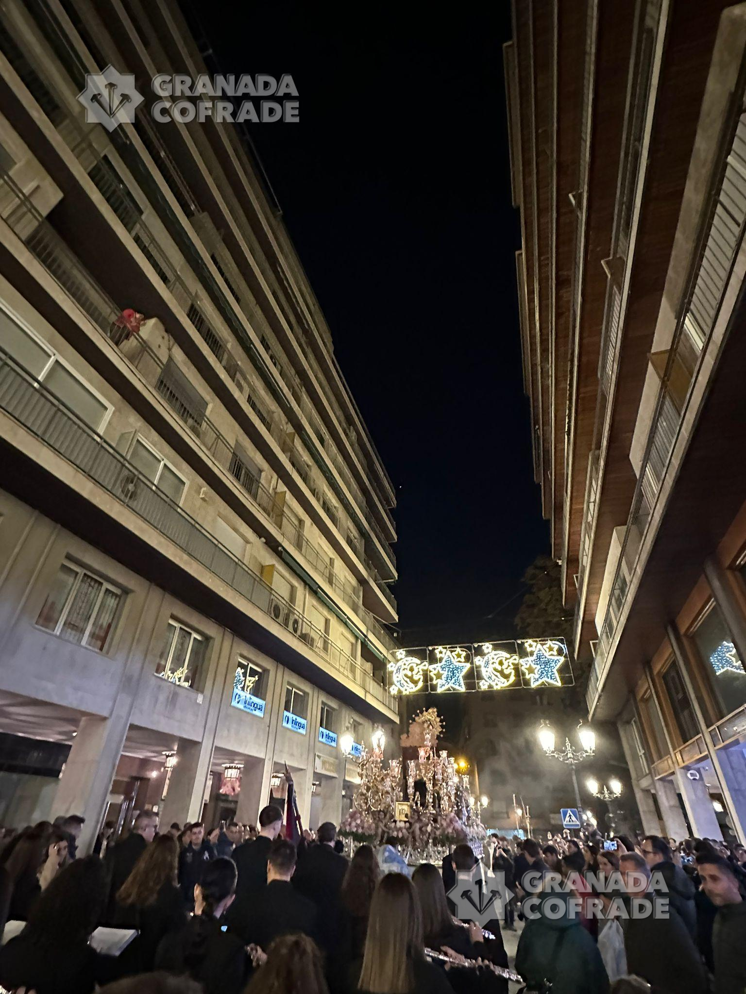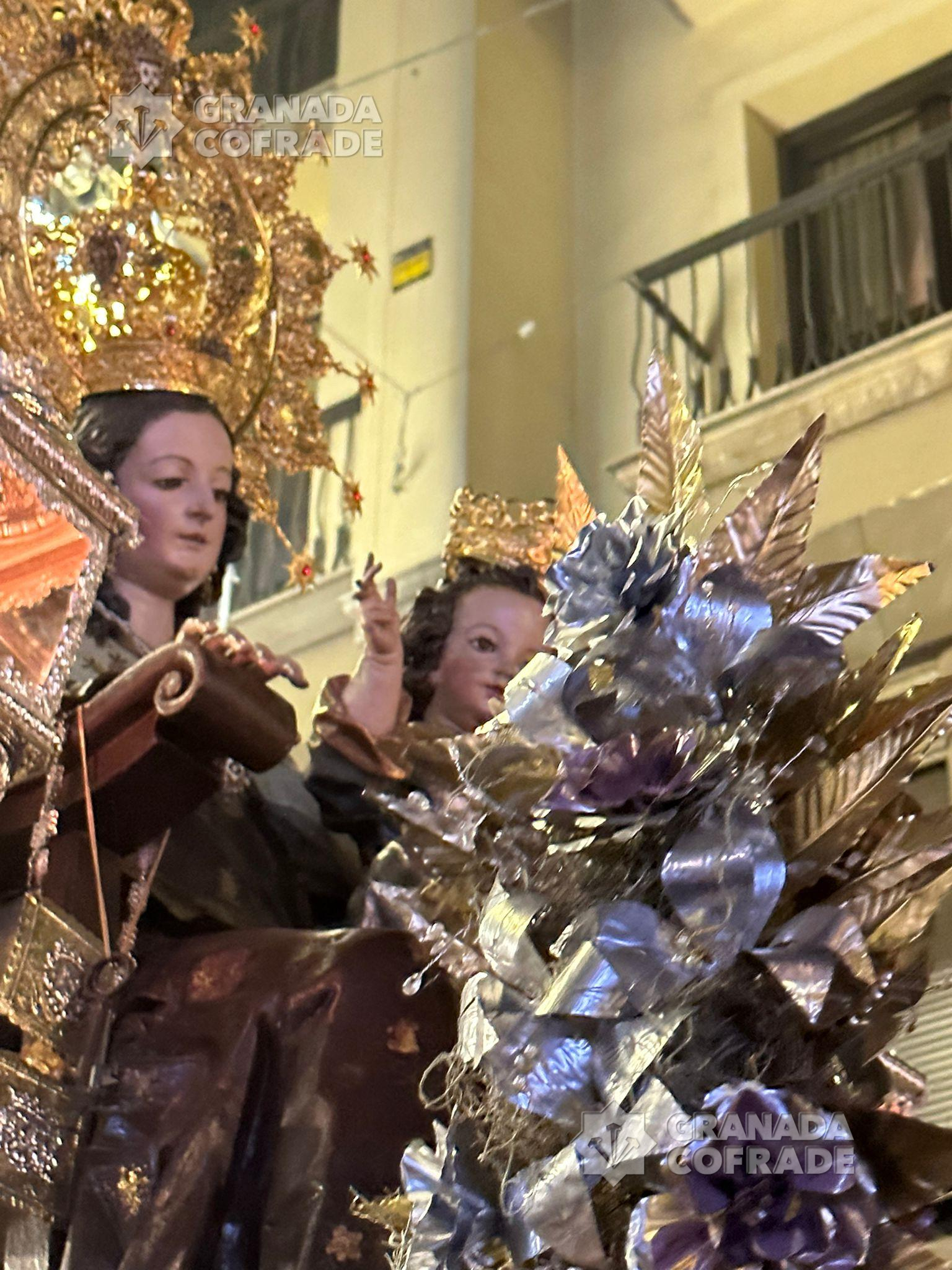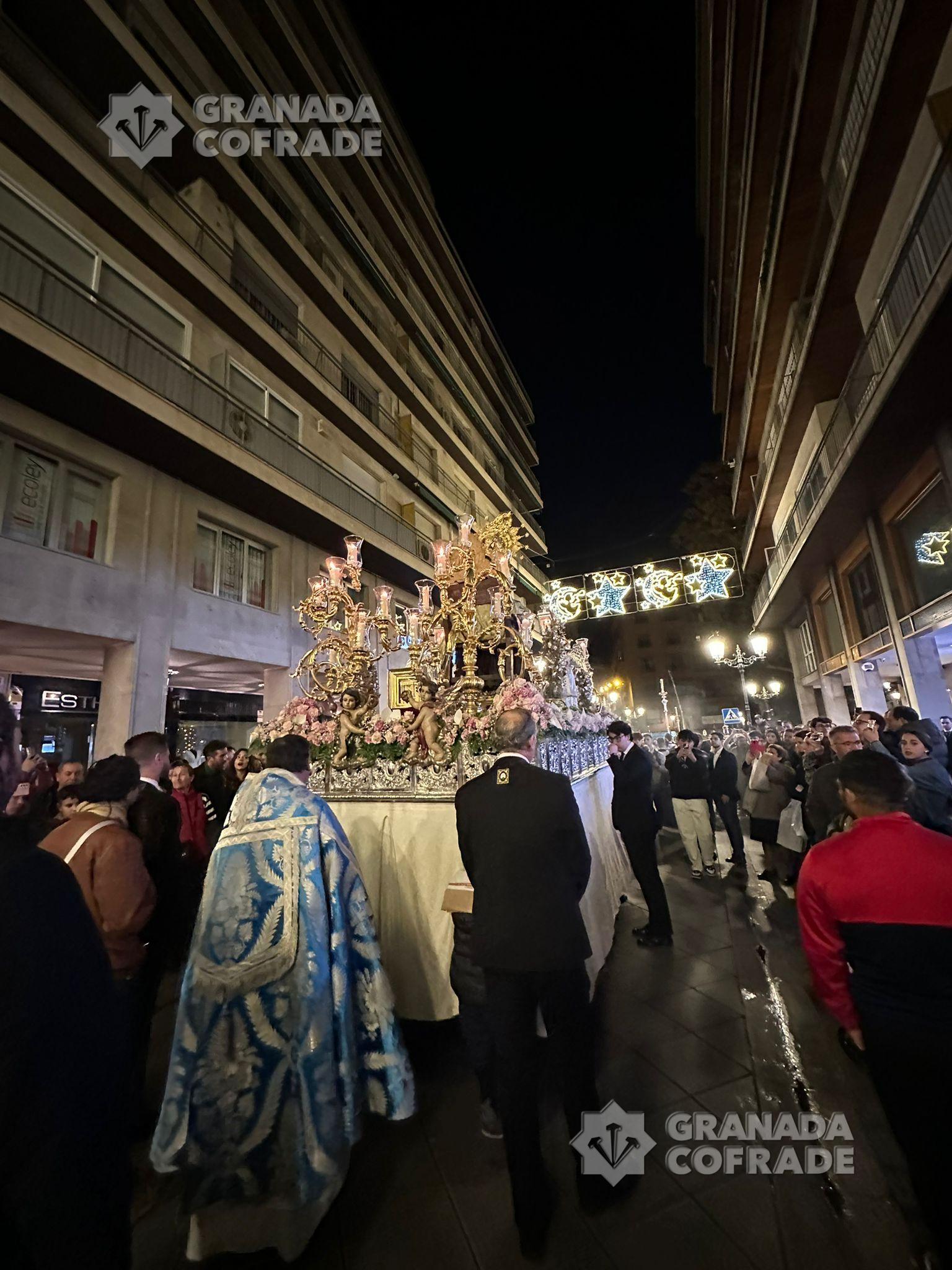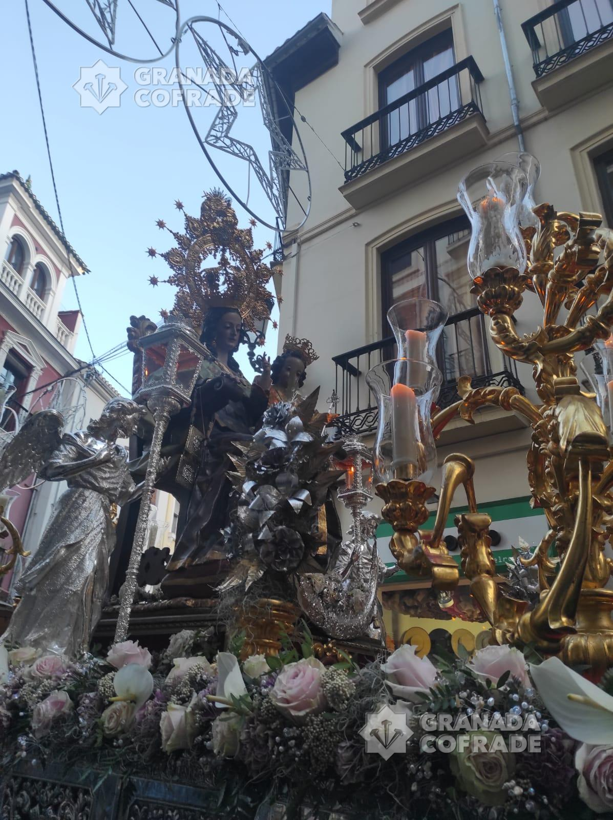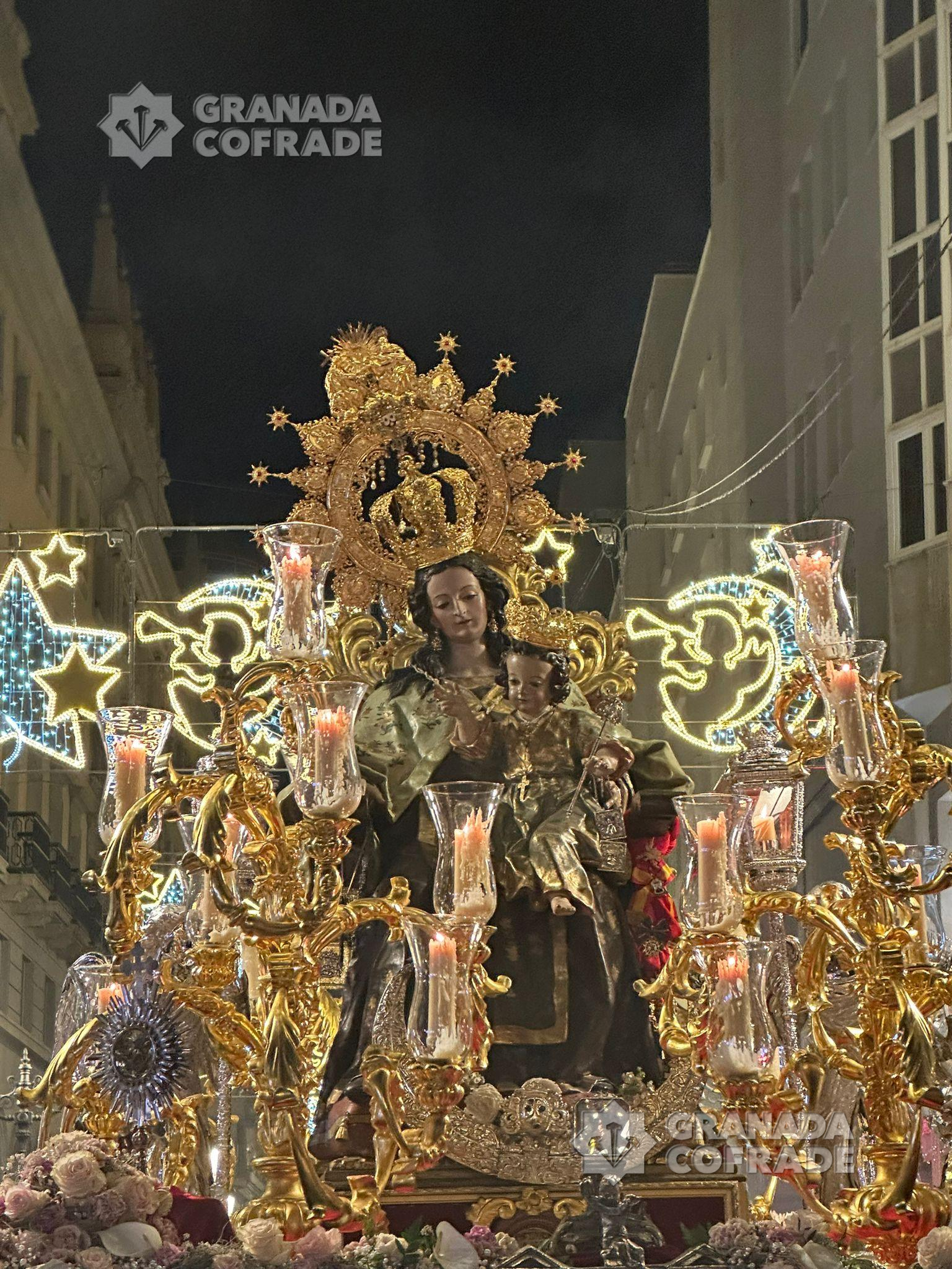 Con el acompañamiento de la banda Ciudad de Atarfe la imagen de la Gran Madre, Nuestra Señora del Carmen, regreso a su sede, después de haber presidido la Vigilia de la Inmaculada y la Eucaristía de la solemnidad de la Inmaculada Concepción en la Catedral de Granada. Un cortejo que se vio acompañado por la cofradía del Santo Vía Crucis, la decana de Granada, junto con la de la Oración en el Huerto, María Auxiliadora de la Alhambra y la de Nuestra Señora de la Cabeza.