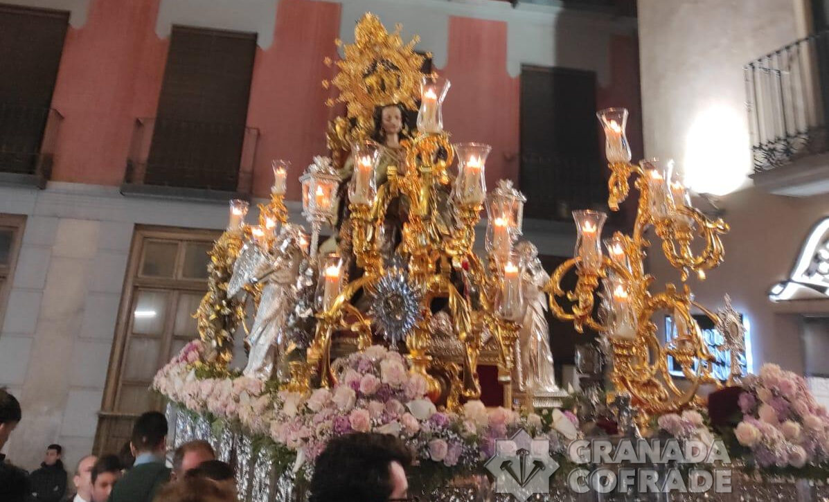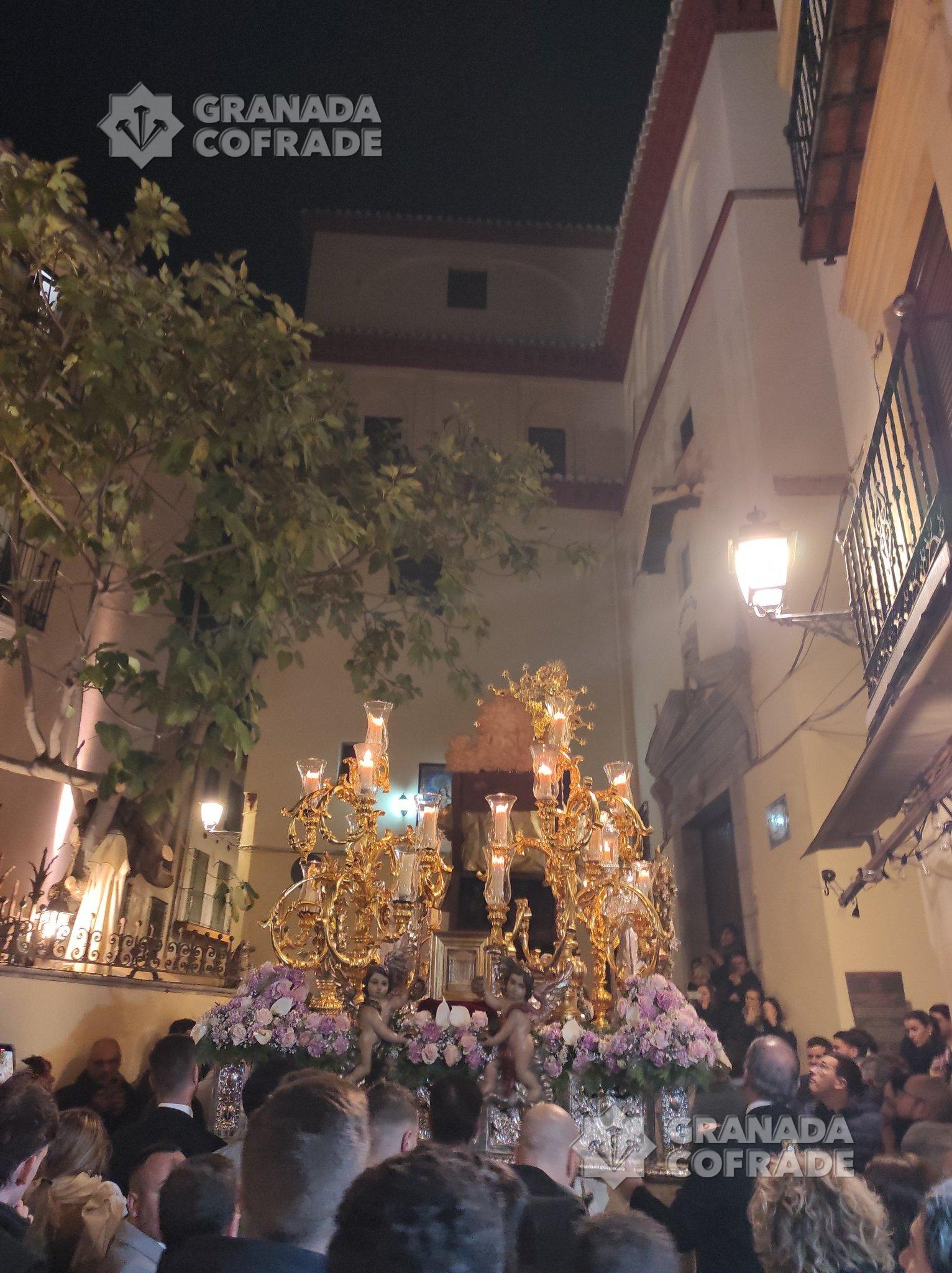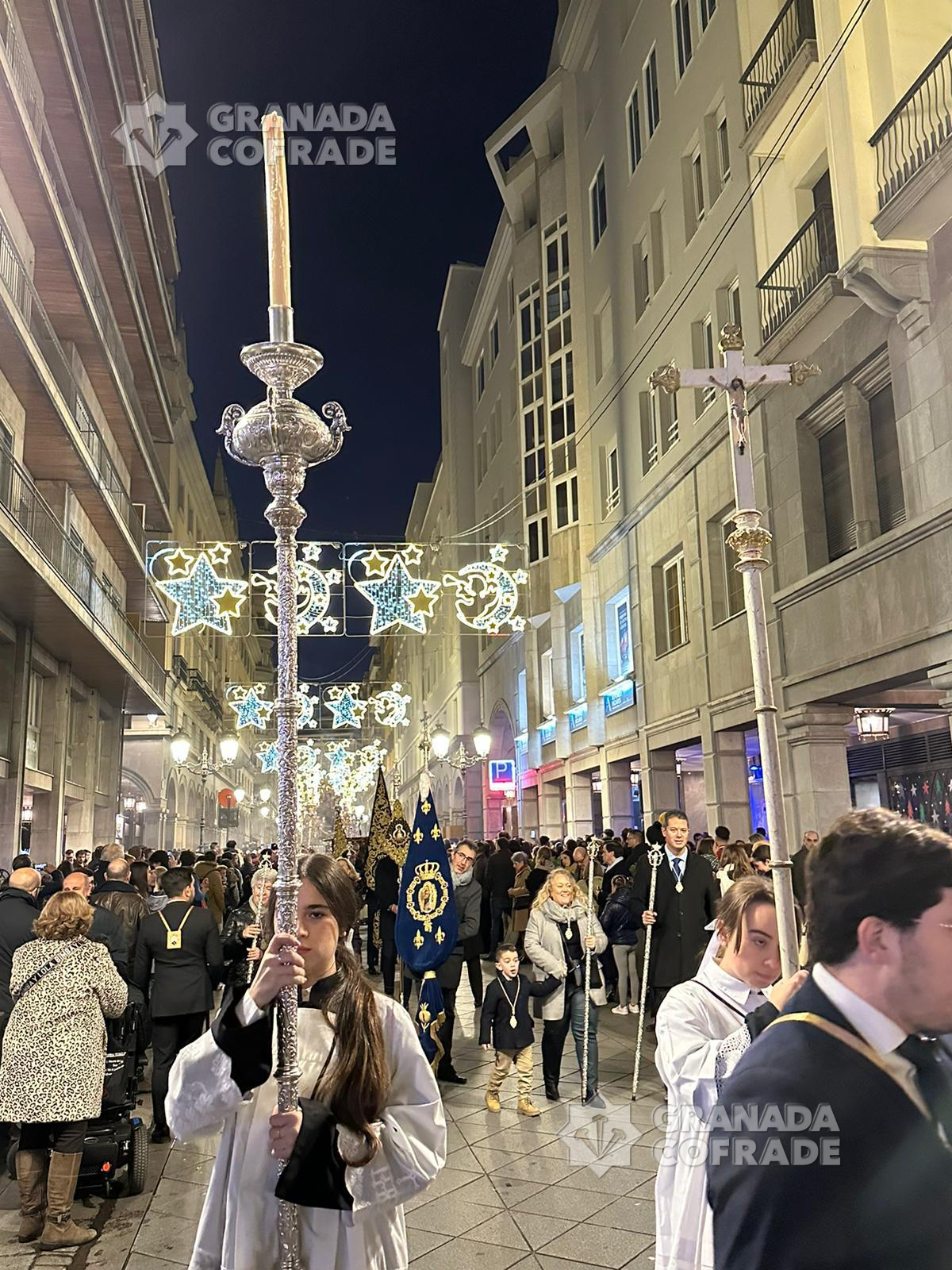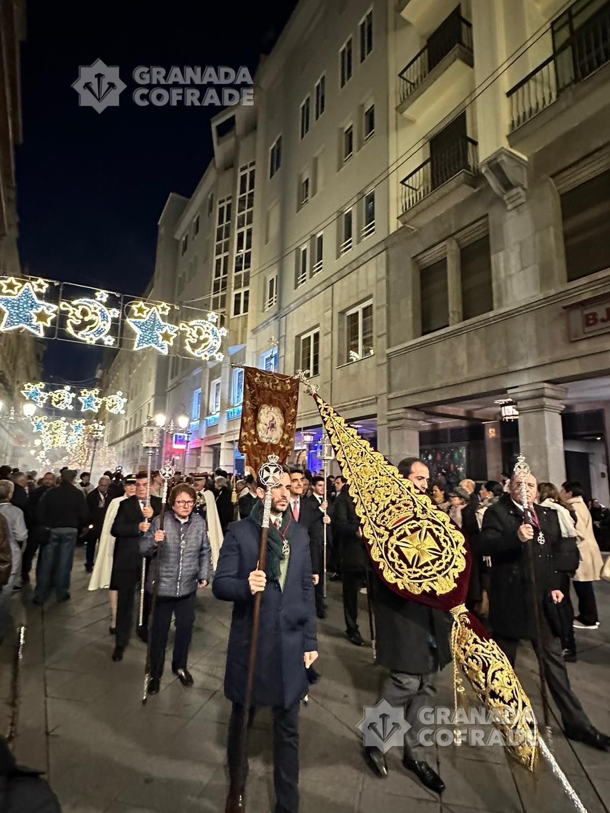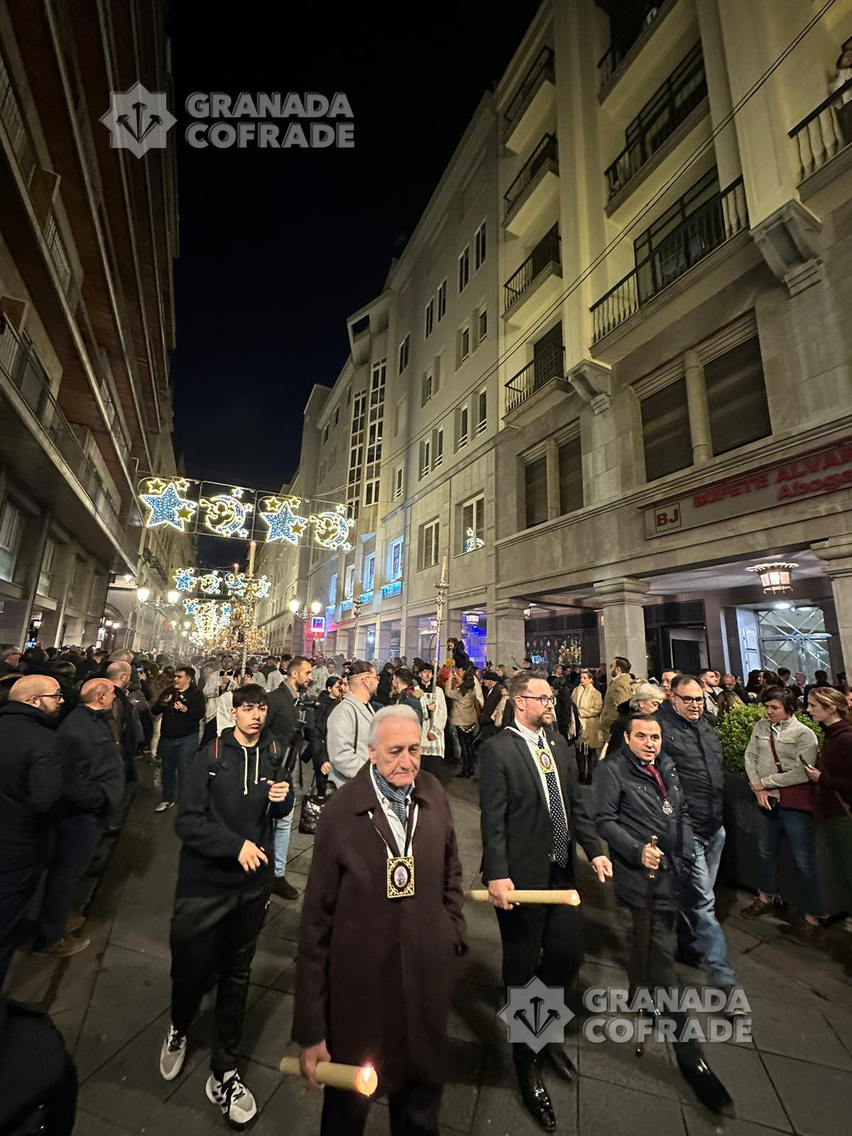 Con el acompañamiento de la banda Ciudad de Atarfe la imagen de la Gran Madre, Nuestra Señora del Carmen, regreso a su sede, después de haber presidido la Vigilia de la Inmaculada y la Eucaristía de la solemnidad de la Inmaculada Concepción en la Catedral de Granada. Un cortejo que se vio acompañado por la cofradía del Santo Vía Crucis, la decana de Granada, junto con la de la Oración en el Huerto, María Auxiliadora de la Alhambra y la de Nuestra Señora de la Cabeza.