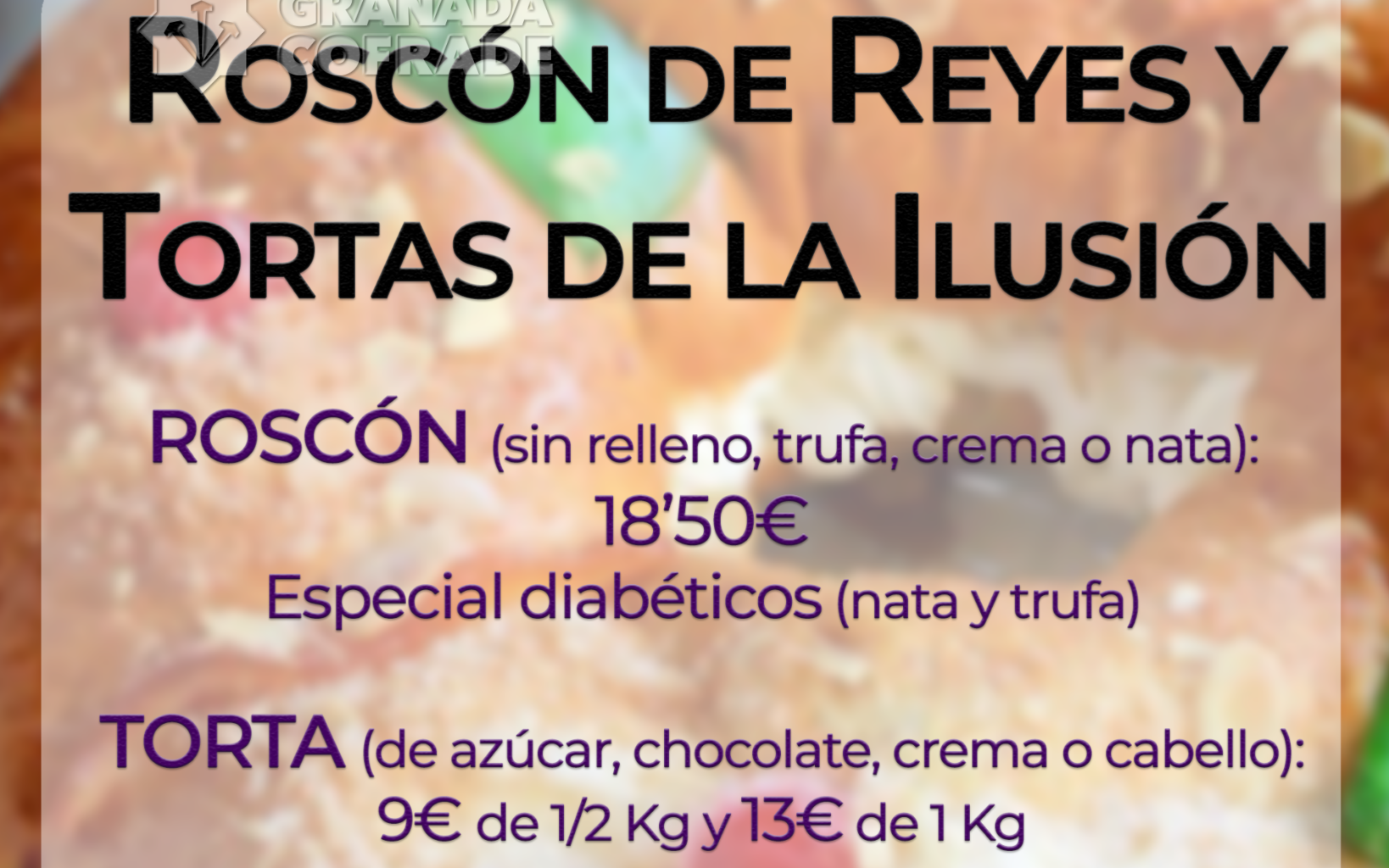Los pedidos se realizarán a través del teléfono 649640078 (Lola) hasta el 3 de enero a las 14:00 horas, así como se recogerán el viernes 5 de enero en la casa de hermandad de 11:30 a 13:30 horas.