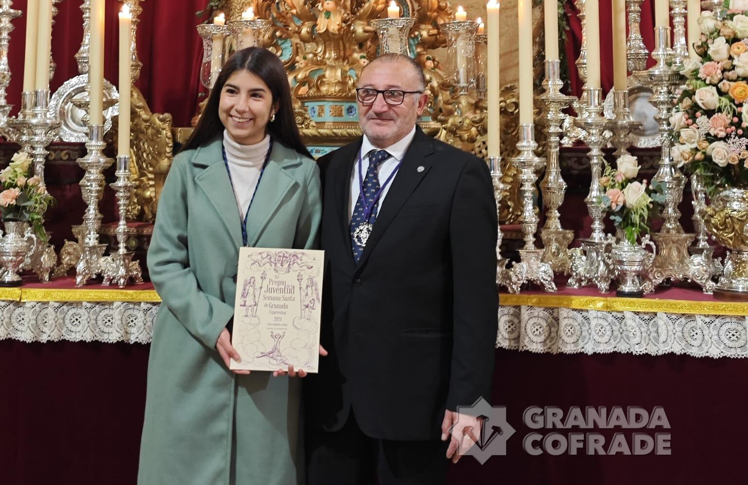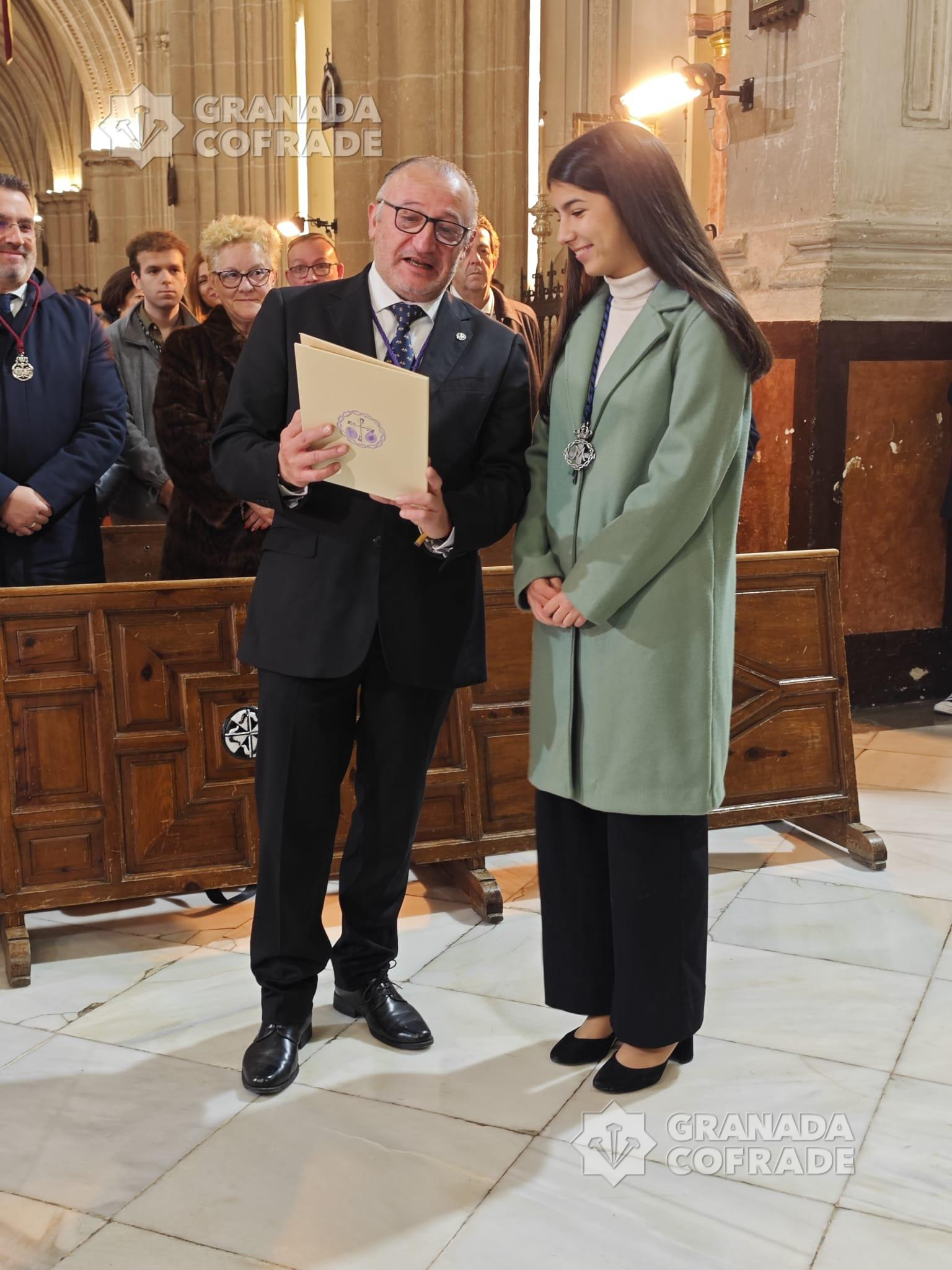 Al término de la celebración Eucarística, concelebrada por el párroco y consiliario, el dominico Antonio Larios, se procedió a la entrega del nombramiento de pregonera de la Juventud de la Semana Santa de Granada a Lucía Serrano, joven hermana de la cofradía del Santísimo Cristo de la Redención y alumna del Colegio Cristo Rey, cuya comunidad también estaba presente en la celebración de la Eucaristía. El hermano mayor, Germán Bolivar, entregó a la pregonera tanto el nombramiento como las cubiertas de encuadernación.