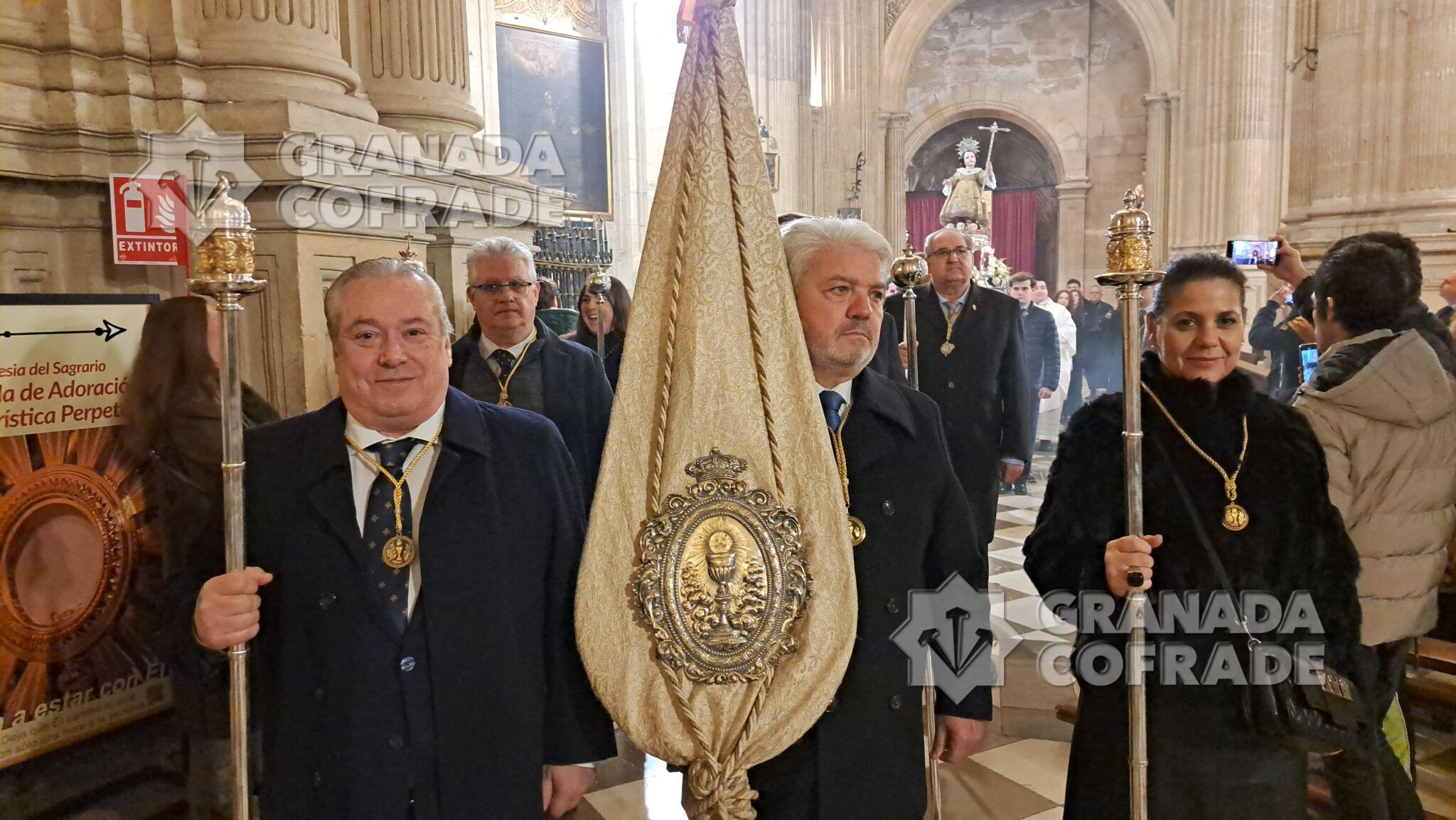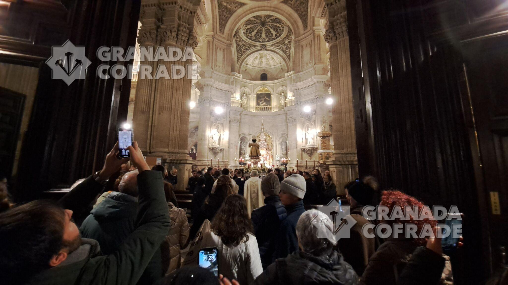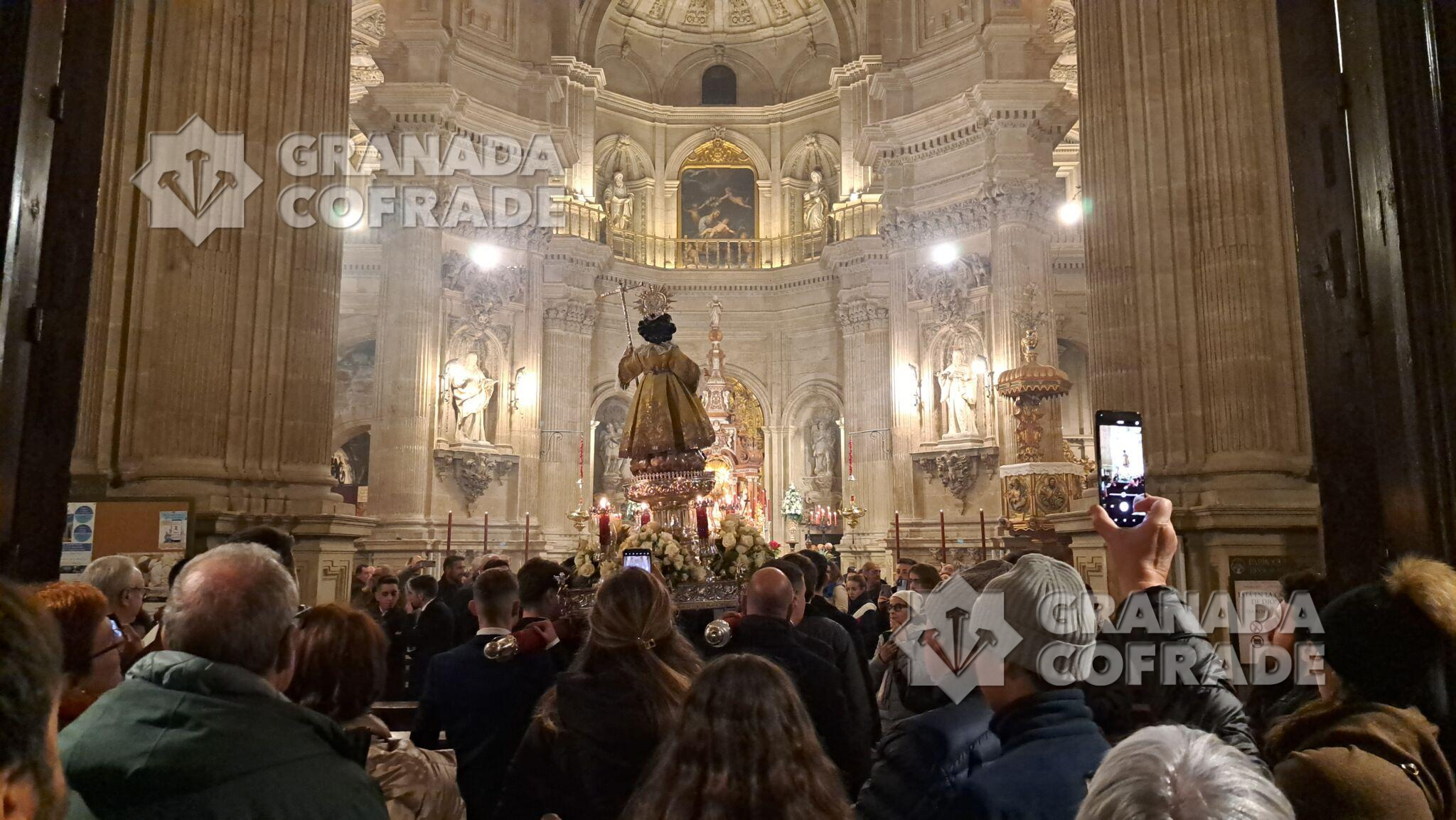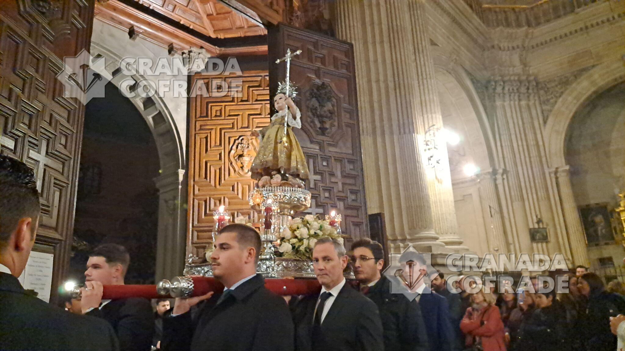 El vicario general de la diócesis de Granada, Enrique Rico Pavés, presidió ayer la solemne Eucaristía de la hermandad Sacramental del Sagrario-Catedral dedicada a su Titular, el Dulcísimo Nombre de Jesús. Situado sobre sus andas procesionales en orfebrería se presenta la Divina Imagen del Infante dispuesta para su procesión claustral al término de la Eucaristía. Estuvo concelebrada por el sacerdote diocesano Rubén Ávila. Estuvo solemnizada de manera magistral por la granadina María Angustias Linares y al órgano, su padre, Antonio Linares, mientras que la procesión claustral, que se aproximó a la puerta del templo del Sagrario para recibir la oración hecha villancico de Coros y Danzas de Granada, estuvo acompañada también por este grupo que confirió un ambiente de recogimiento y oración en torno a las andas procesionales. Eran mandadas por Ricardo Mora. En el cortejo participaban los nuevos Mayordomos Sacramentales de la Hermandad, Jaime Sánchez – Llorente y Esther Vaquero.