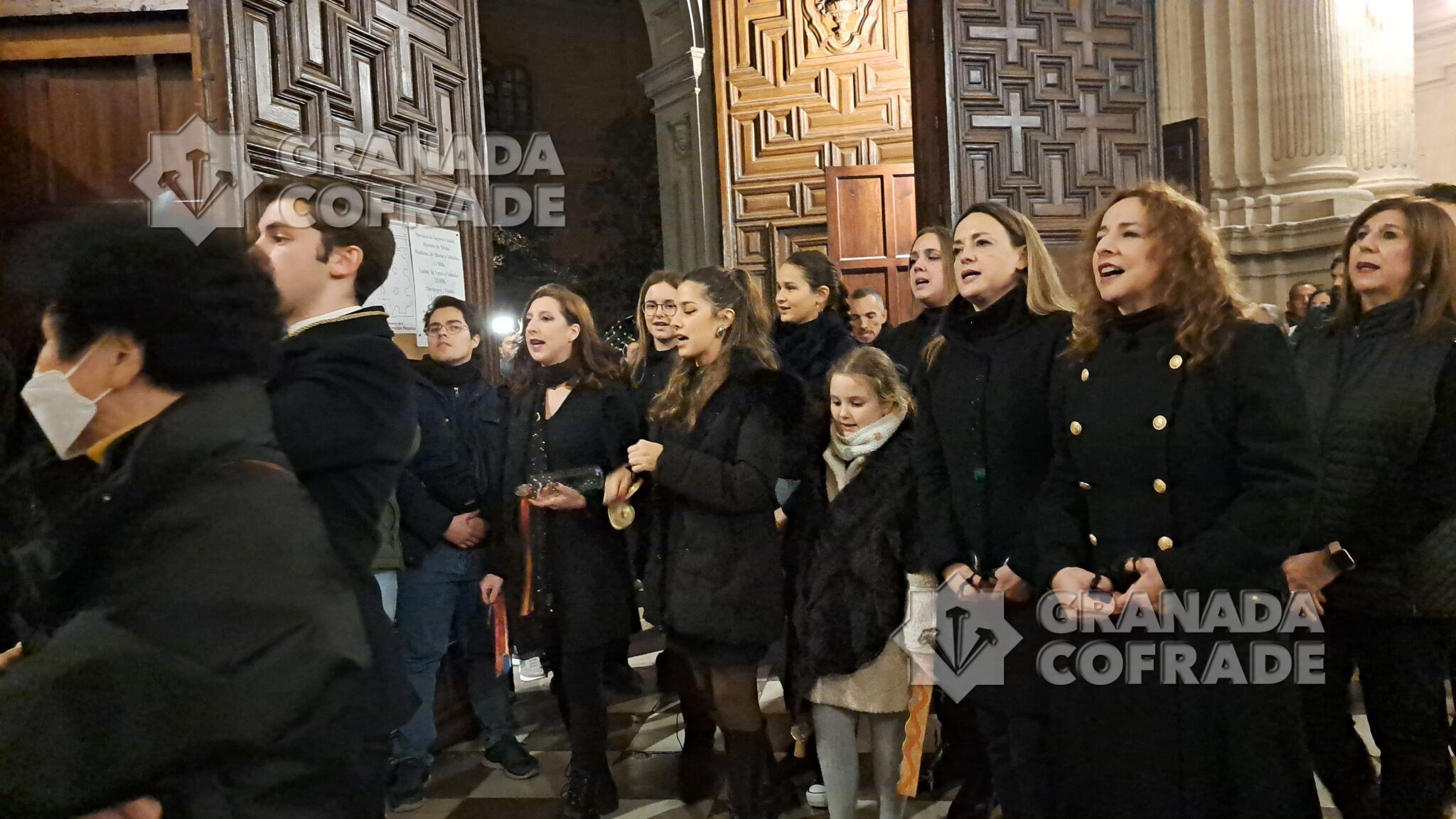 El templo, totalmente abarrotado de fieles, y se contó también con la presencia del hermano mayor de la Sacramental de Nuestra Señora de las Angustias y de la de Jesús Cautivo, además de diferentes cofrades que participaron también de la celebración religiosa que resultó muy solemne y participativa. Destacaba también el buen gusto y elegancia del altar del templo presidido por otra imagen del Dulce Nombre, de las dos que posee la hermandad Sacramental, con cera roja y flor de talco dorada.