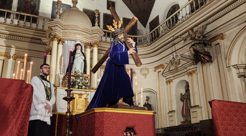 Como finalización del quinario celebrado estos días atrás en la parroquial de San Gil y Santa Ana, la hermandad de Jesús del Gran Poder y Nuestra Señora de la Esperanza celebraron por la tarde su función solemne. Después y al término de la misma, quedó expuesta la imagen del Nazareno de Ramos Corona para la veneración de hermanos y fieles. Se presentaba en el presbiterio de la parroquia teniendo como fondo la inusual presencia de la imagen de Nuestra Señora de la Soledad en Calvario debido al Año Jubilar del centenario de la reorganización de esta hermandad de penitencia con la que comparte sede la cofradía de la Esperanza.