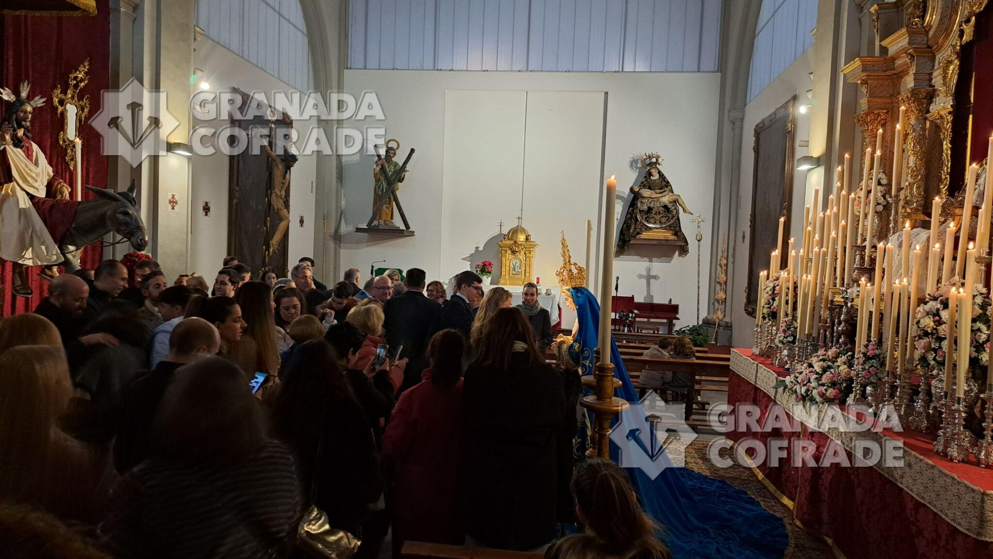 En el mediodía de ayer tuvo lugar la Función Principal en honor de la Virgen de la Paz en el interior del templo de San Andrés, organizada por la cofradía de la Borriquilla, como culmen al triduo que se venía celebrando en los días previos en honor de la Titular mariana de la hermandad del Domingo de Ramos. A la misma asistieron, además de numerosos hermanos que abarrotaron la iglesia de la calle Elvira, el Teniente General Jefe del MADOC, José Manuel de la Esperanza, junto a su esposa, representado así a la institución que es Hermano Mayor Honorario de esta cofradía. Igualmente, Francisco Almohalla, que además de hermano de la corporación nazarena es actualmente concejal de Participación Ciudadana del Ayuntamiento de Granada y Presidente de la Junta Municipal de Distrito Albaicín, institución que también es Hermano Mayor Honorario de la citada hermandad. La Eucaristía estuvo presidida por el consiliario y párroco de San Andrés, Francisco Lorca.