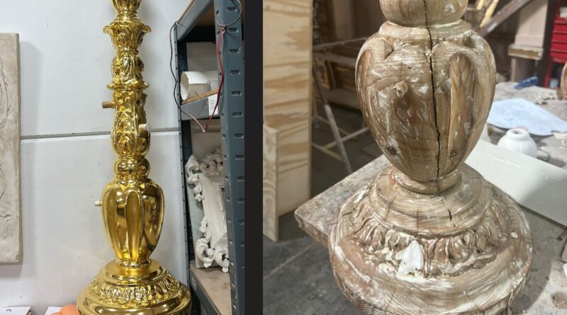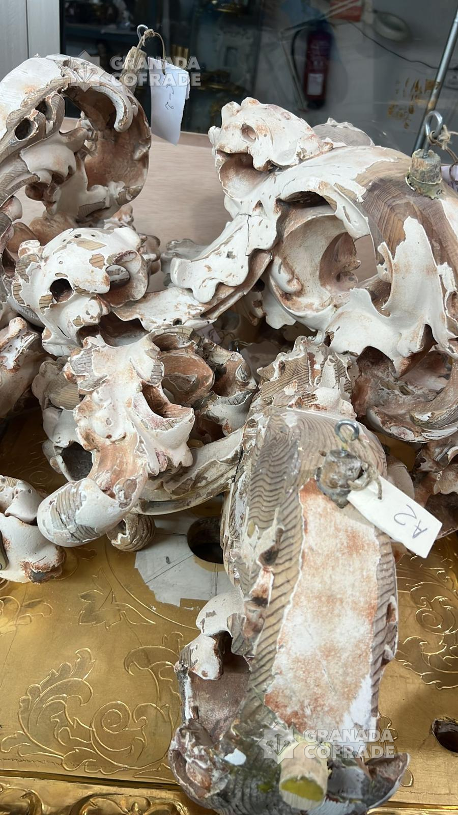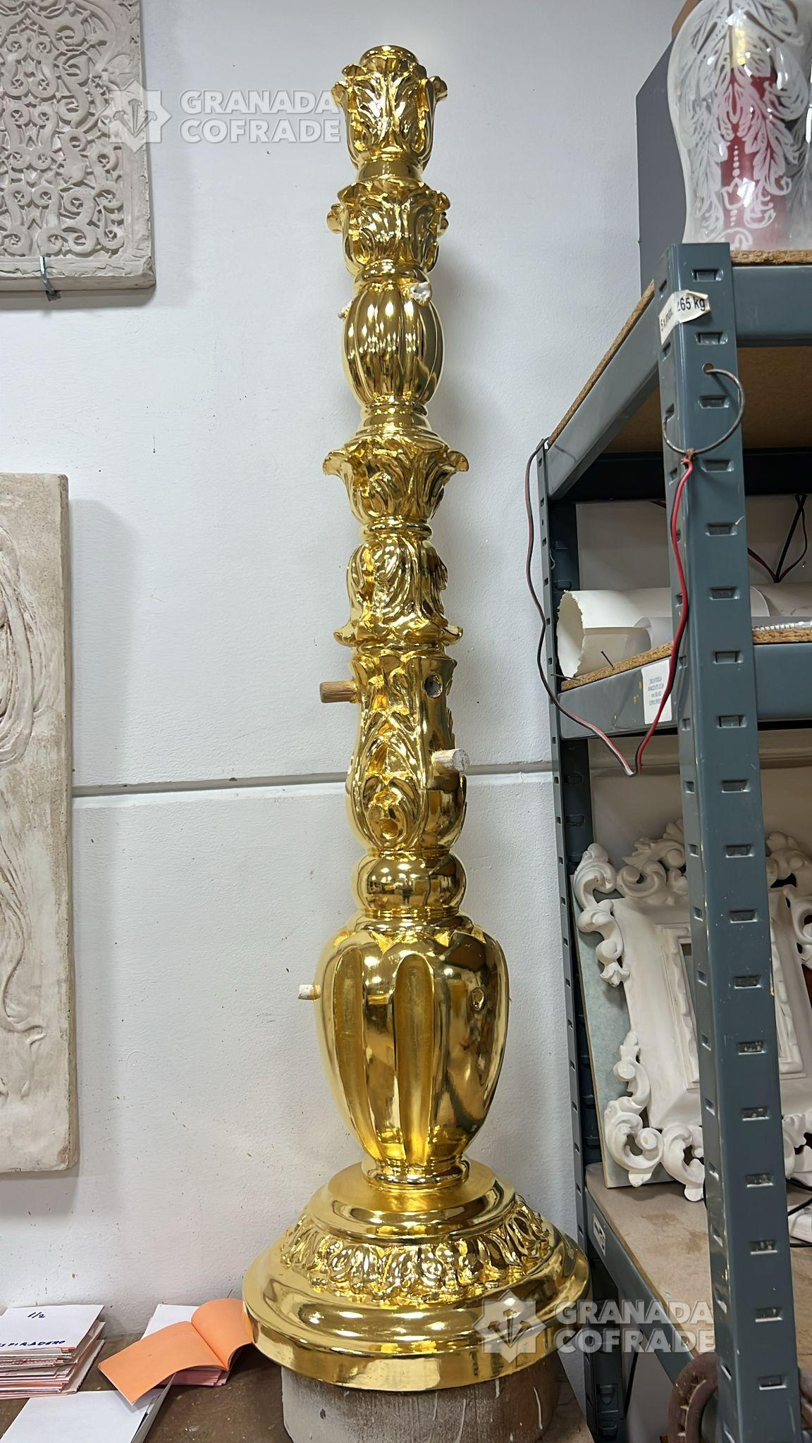 El taller de dorado y restauración de Abel Velarde (Alcalá de Guadaíra, Sevilla) ultima en estas fechas la restauración de la pareja de guardabrisas traseros del paso de Jesús de la Amargura, uno de los principales proyectos patrimoniales en los que está inmersa la Hermandad del Santo Vía Crucis. Se han llevado a cabo los trabajos de decapado y preparación previa, además de la realización e integración de tres brazos que se recuperan en el cuerpo superior de cada candelabro y que décadas atrás fueron suprimidos. En la actualidad, se está avanzando en el dorado de las piezas, alguna de ellas ya culminadas tras el bruñido de las mismas.
