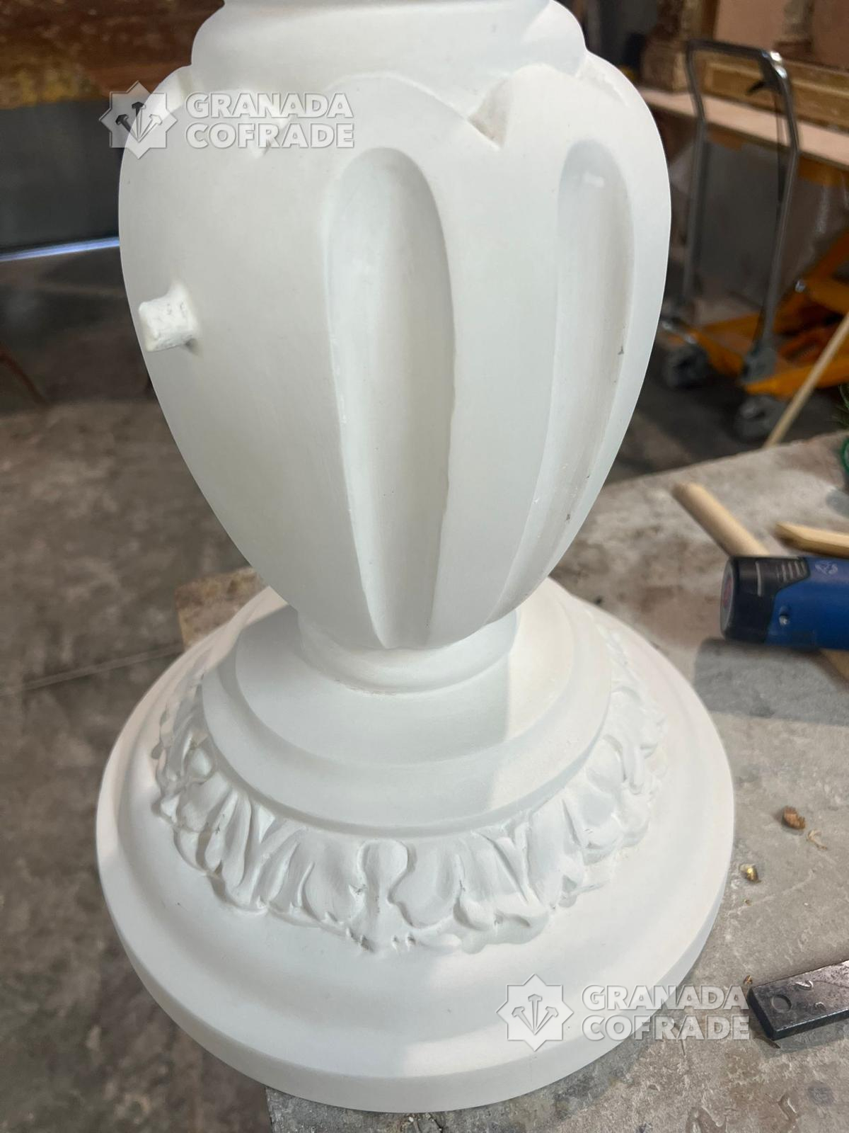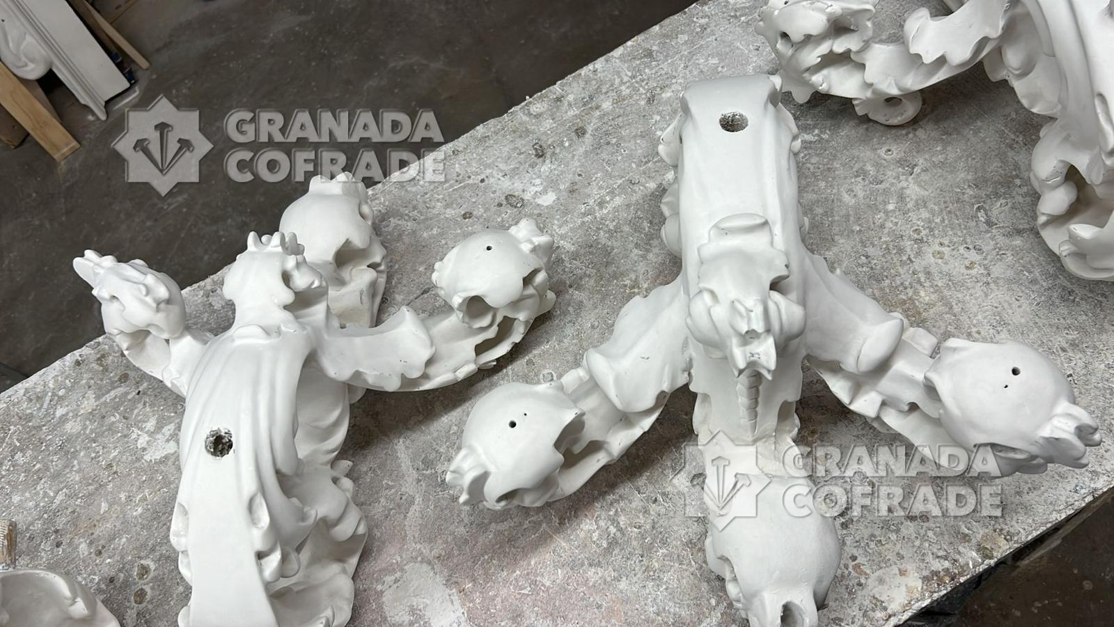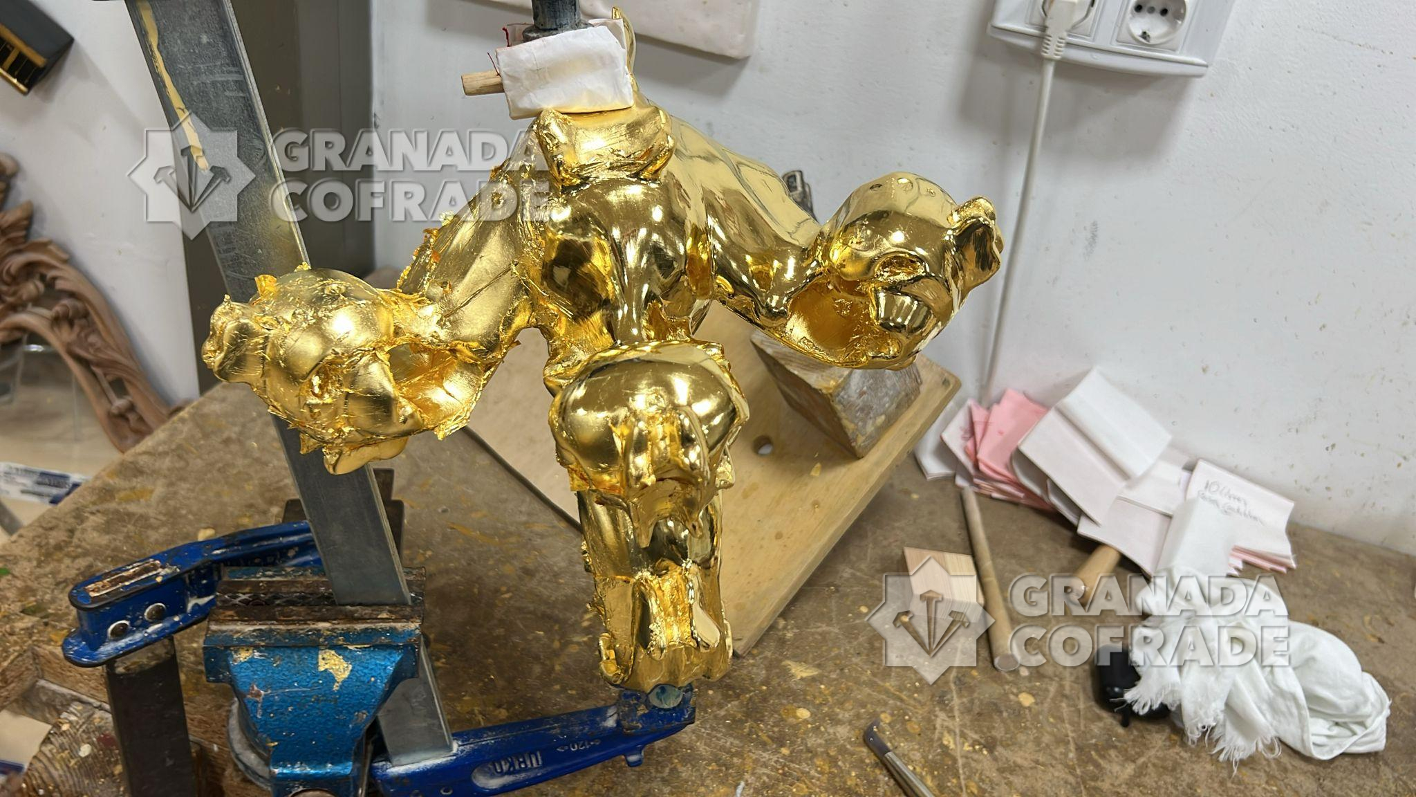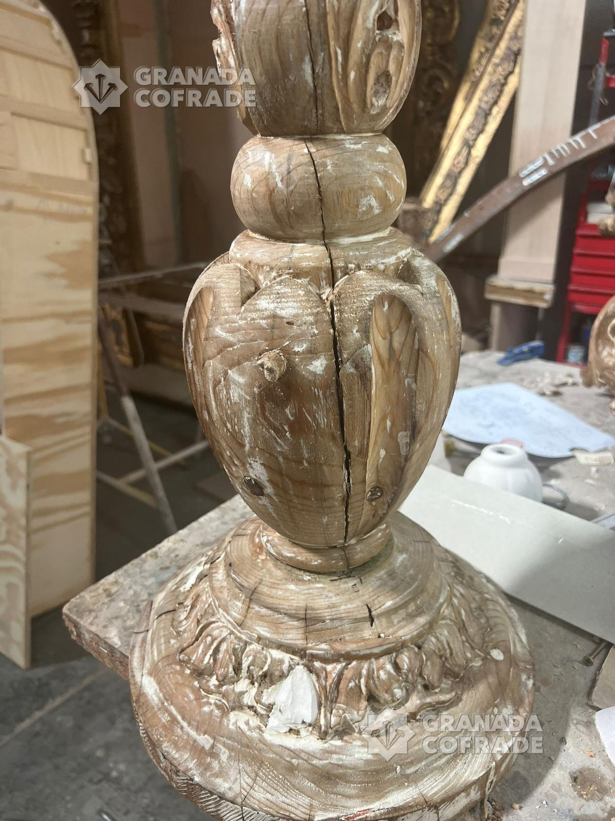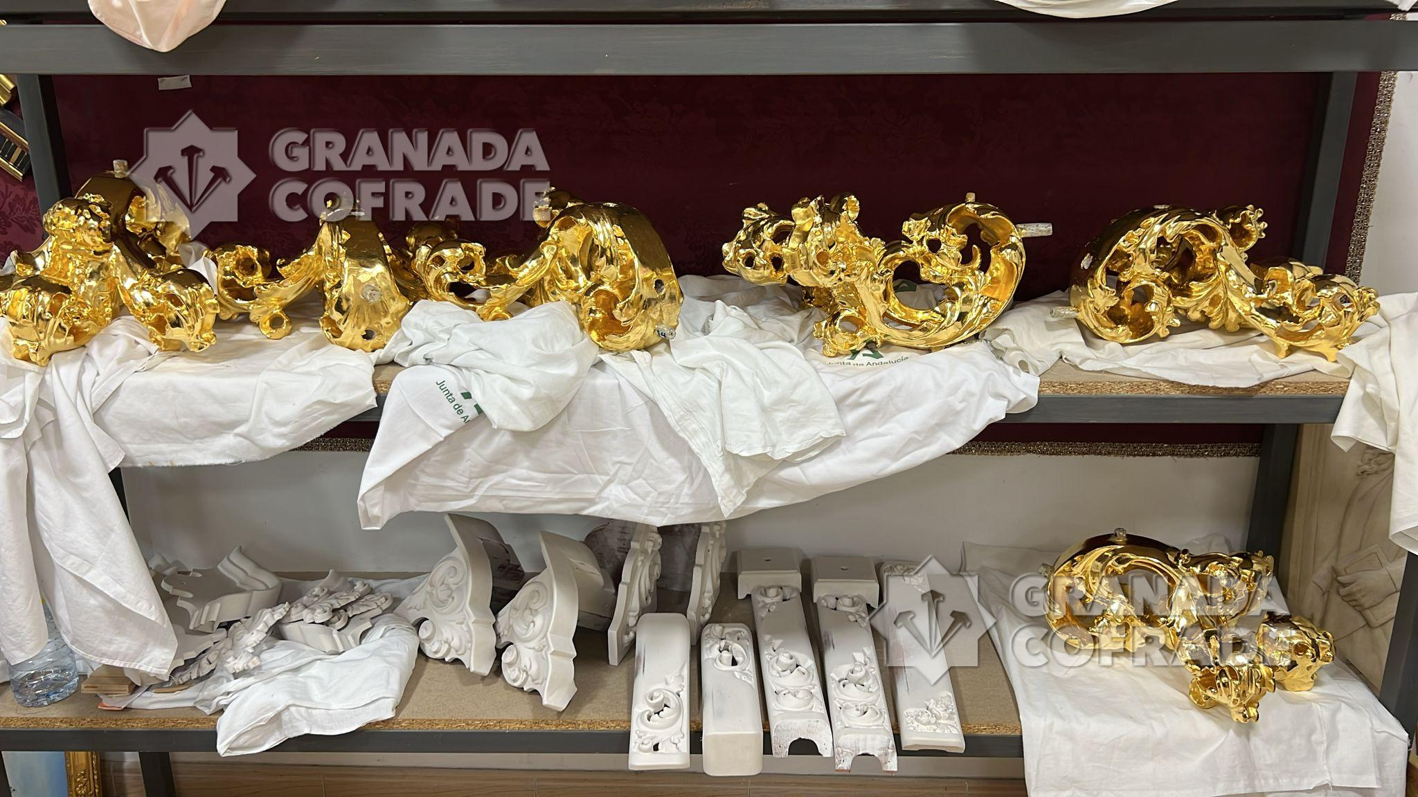Se trata de la primera fase de esta actuación a la que, a posteriori, le seguirán dos fases más con los trabajos de saneamiento, conservación y dorado en el resto de piezas que completan el conjunto realizado en 1947 por Nicolás Prados López. En concreto, los dos guardabrisas delanteros y los que escoltan a la imagen del Señor, de menor tamaño.