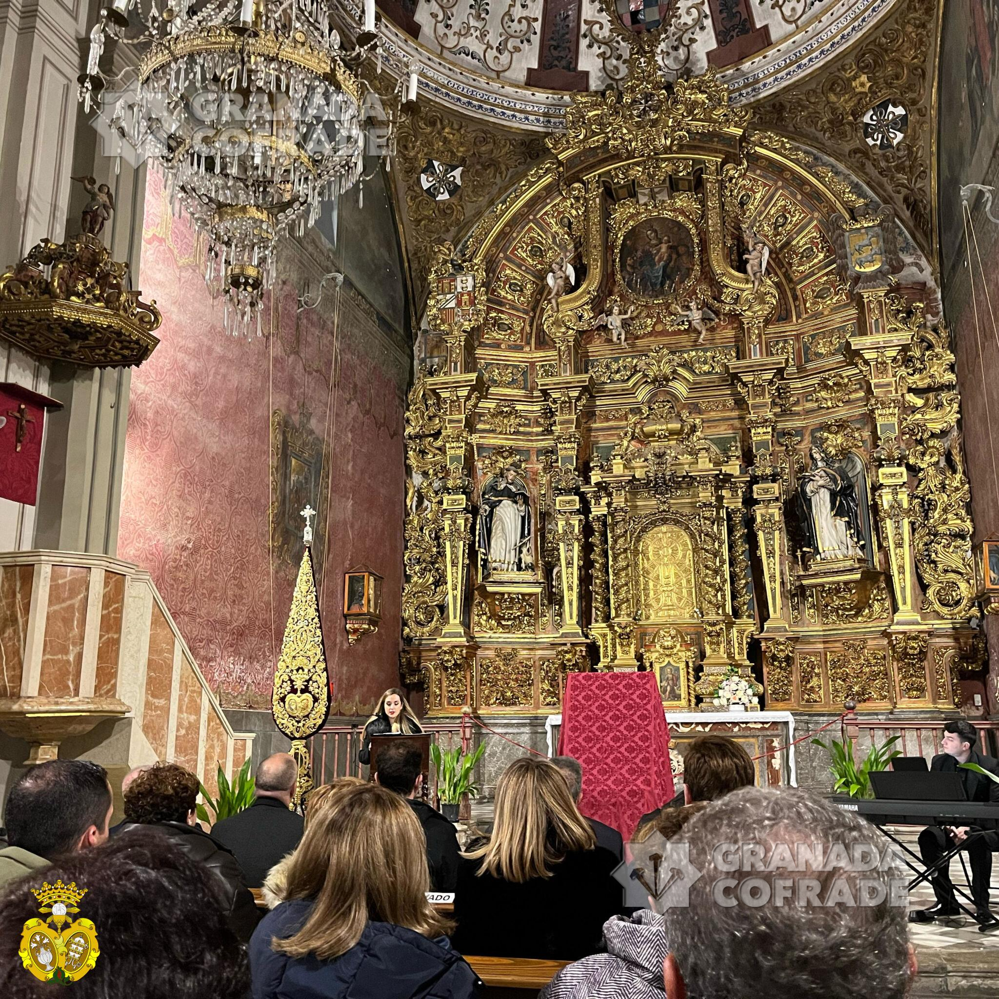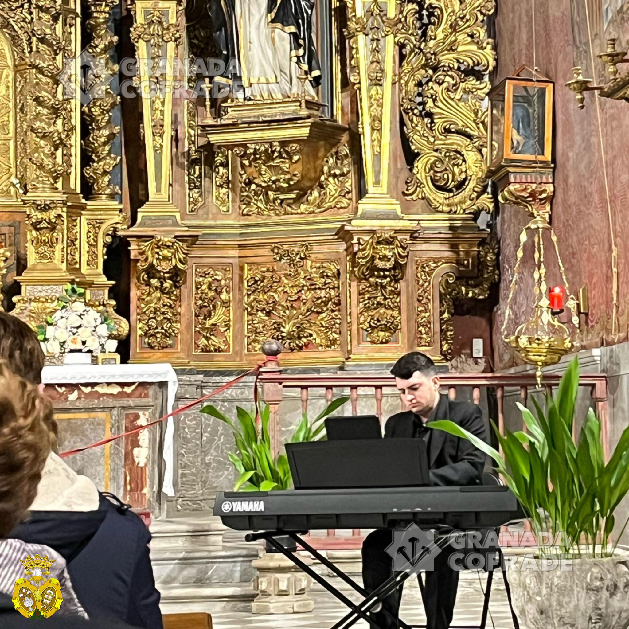 El acto fue introducido por la actuación del pianista y compositor Elías Santiago Vico, que interpretó adaptaciones de las marchas procesionales «Ecce Homo», «La Esperanza de María», «Regina Sacratissimi Rossari» y «Virgen del Darro». Tras esto tomaba la palabra la Vocal de Protocolo, Marta Alejandra Jiménez, para glosar brevemente la figura del presentador del que elogió sus bastos conocimientos en historia y simbología religiosa y su reconocida trayectoria en los atriles, relató su decidida devoción mariana a través de las dos vocaciones que marca su vida; Angustias y Esperanza, y su relación de cercanía con nuestra corporación siendo nieto y sobrino-nieto de hermanos fundadores de la misma.