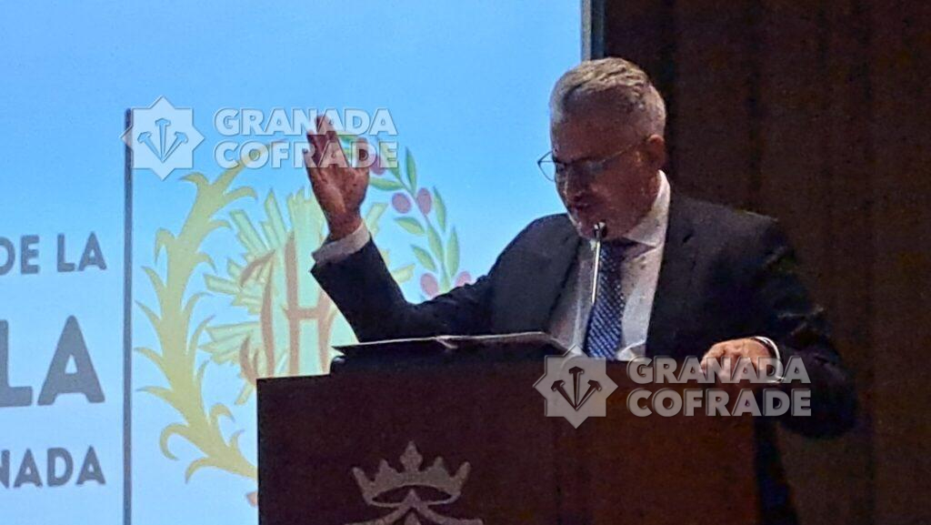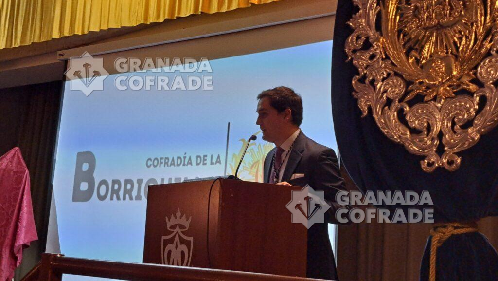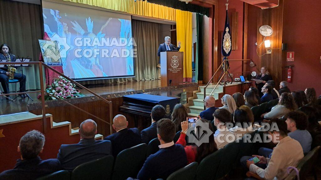 En los treinta minutos que duró su intervención habló de lo que supone esta hermandad para Granada y su Semana Santa, de cómo van pasando los años y de los niños de la cofradía, dando un buen puñado de nombres propios de niños de hermanos, «algunos ya jóvenes, que quiero que sepáis que vuestros padres han dado y dan los mejores años de su vida por vuestra cofradía».