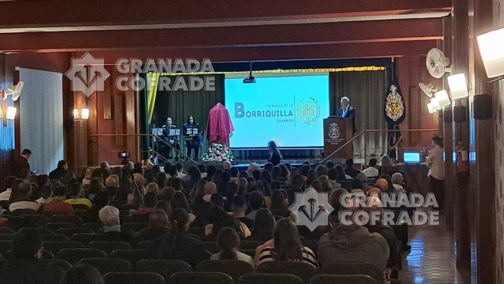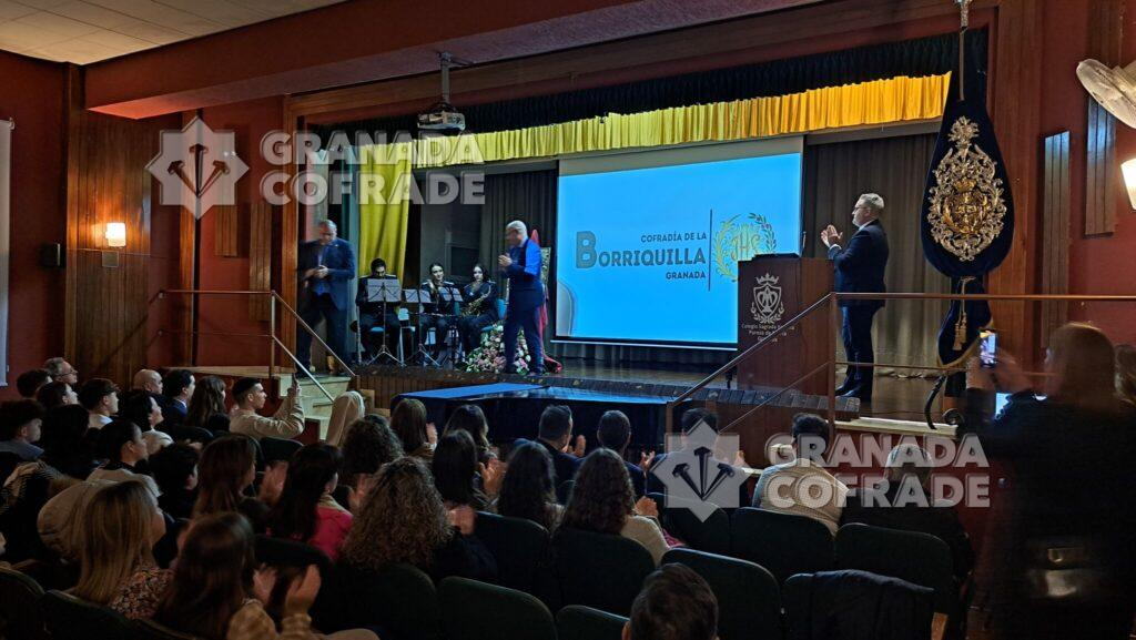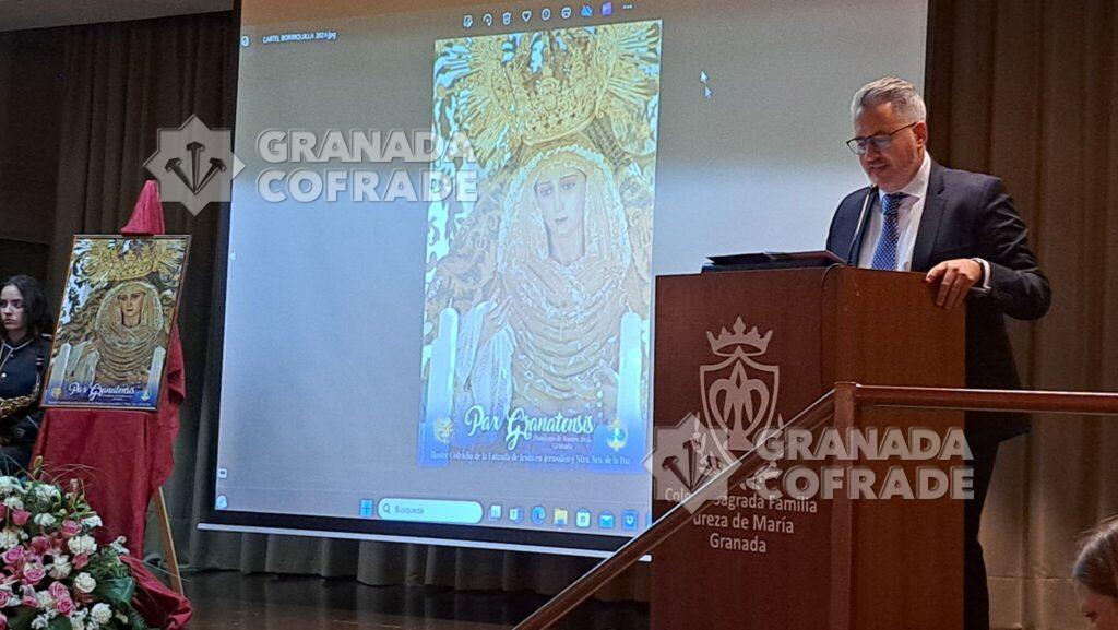 En la tarde de ayer tuvo lugar la presentación del cartel de la cofradía de la Borriquilla en el Salón de Actos del Colegio Sagrada Familia de nuestra ciudad. David Morente fue el encargado de dar a conocer la instantánea salida del certamen fotográfico convocado por esta hermandad del Domingo de Ramos, obra de Juan Rodríguez Arjona, en la que se observa un primer plano de Nuestra Señora de la Paz el pasado Domingo de Ramos en calle Elvira, recién salida del templo de San Andrés.
