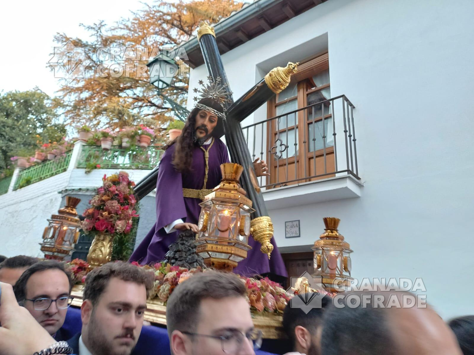 David Salcedo, hermano de la hermandad y secretario particular del arzobispo, presidía el rezo de las estaciones del Vía Crucis. El Señor vestía túnica morada, con nimbo y corona de plata, y las andas iban elegantemente adornadas con diversos tipos de flor en distintas tonalidades.