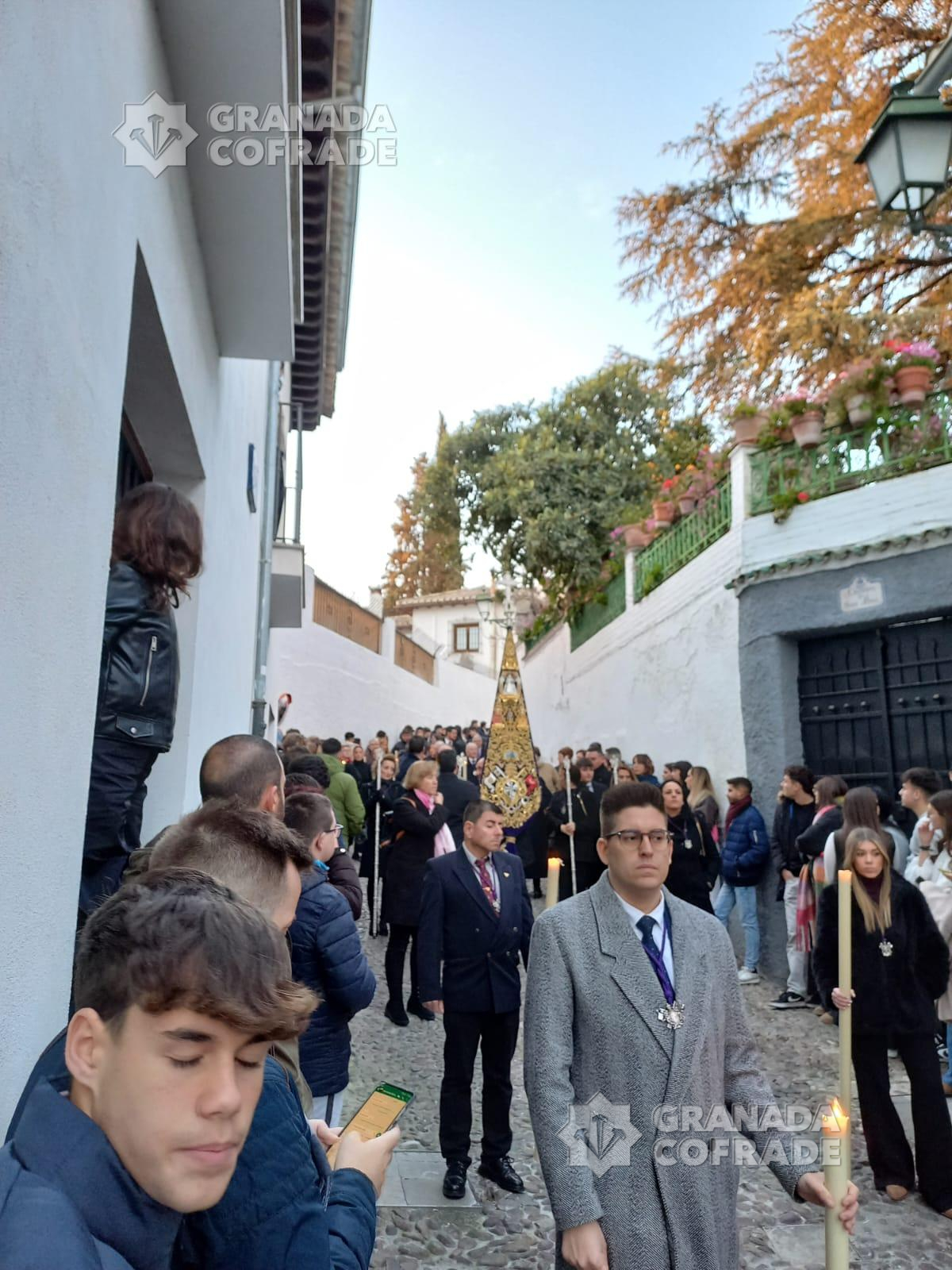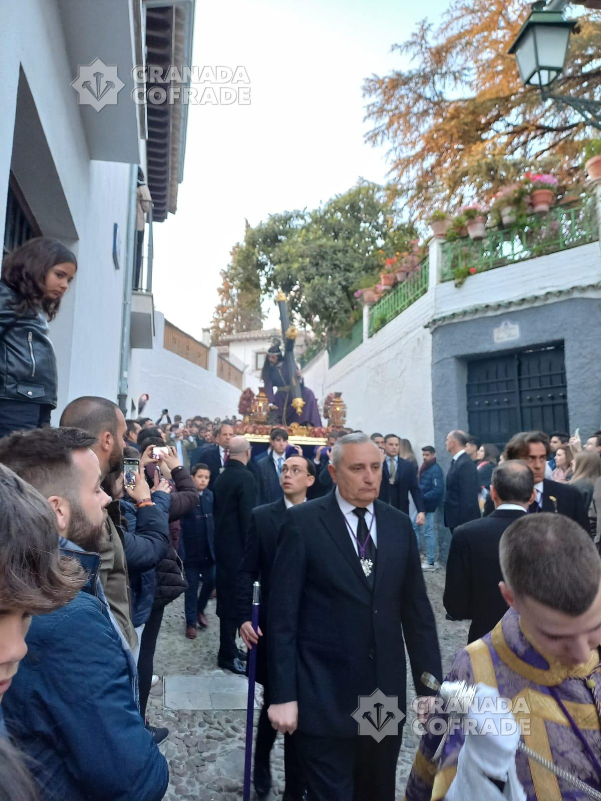Acompañaba en la presidencia de la hermandad al hermano mayor, Fernando Coronel, el Concejal de Mantenimiento del Ayuntamiento de Granada y Presidente de la Junta Municipal de Distrito Albayzin, Francisco Almohalla, el pregonero de la Semana Santa, Pepe Espinel, asi como Miguel Ángel Fernández, en representación de la Federación de Cofradías.