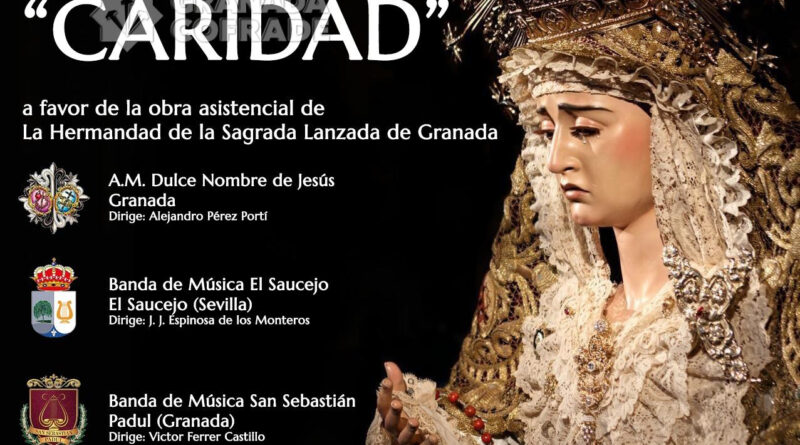El próximo domingo 25 de febrero a las 12:00 horas en el Auditorio de la Caja Rural de Granada se desarrollará el Concierto Benéfico «Caridad», a favor de la obra asistencial de la Hermandad. En este participan la agrupación Dulce Nombre de Jesús de Granada, bajo la batuta de Alejandro Pérez Portí, y la Banda de Música El Saucejo (Sevilla), dirigida por Jesús Joaquín Espinosa de los Monteros, y la Banda de Música San Sebastián de Padul (Granada) con la dirección de Víctor Ferrer Castillo.