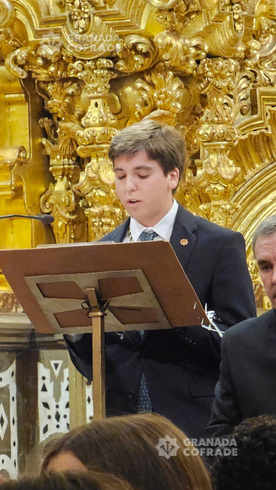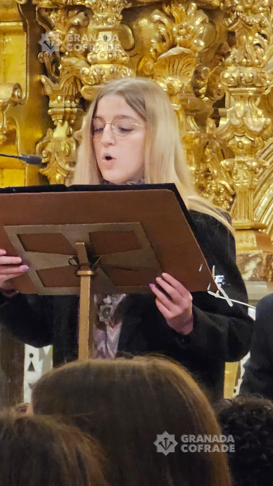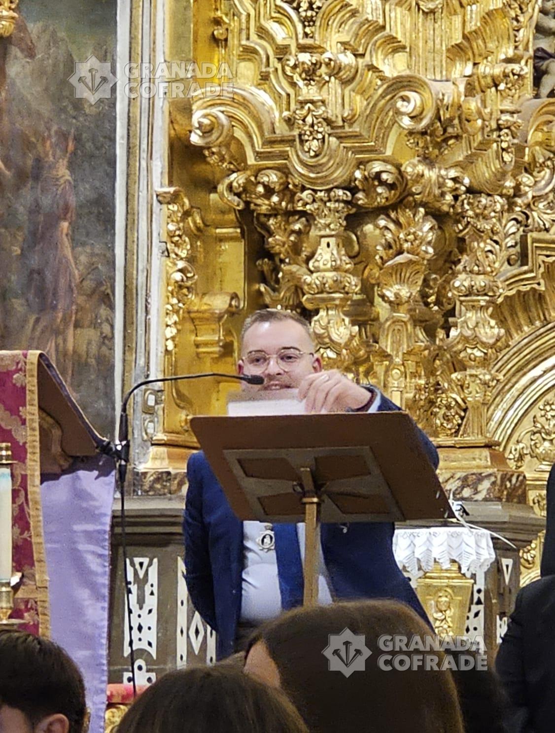 Con la descripción del cartel que este año representa a la juventud cofrade de Santa María de la Alhambra, Candela Martínez Cobos presentó el cartel del Grupo Joven de la hermandad de Santa María de la Alhambra en la iglesia basilical de San Juan de Dios. Lleno total a la llamada de los jóvenes de la cofradía del Sábado Santo para conocer el trabajo desarrollado por el cartelista malagueño José Carlos Torres, natural de Álora.