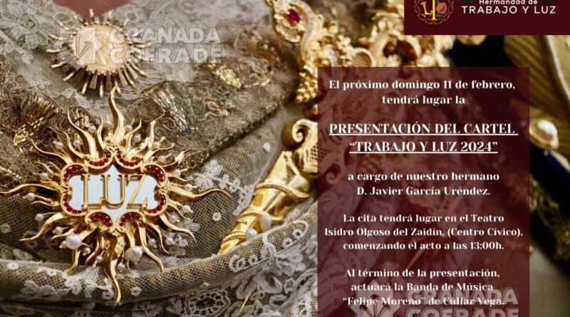 El hermano de la cofradía del Santísimo Cristo de la Luz, Javier García Uréndez, será el encargado de dar a conocer el cartel de la hermandad para esta próxima Semana Santa. La puesta de largo del mismo será en el transcurso del acto convocado por la cofradía zaidinera en el Centro Cívico del Zaidín, a la una de la tarde del domingo día 11 de febrero.