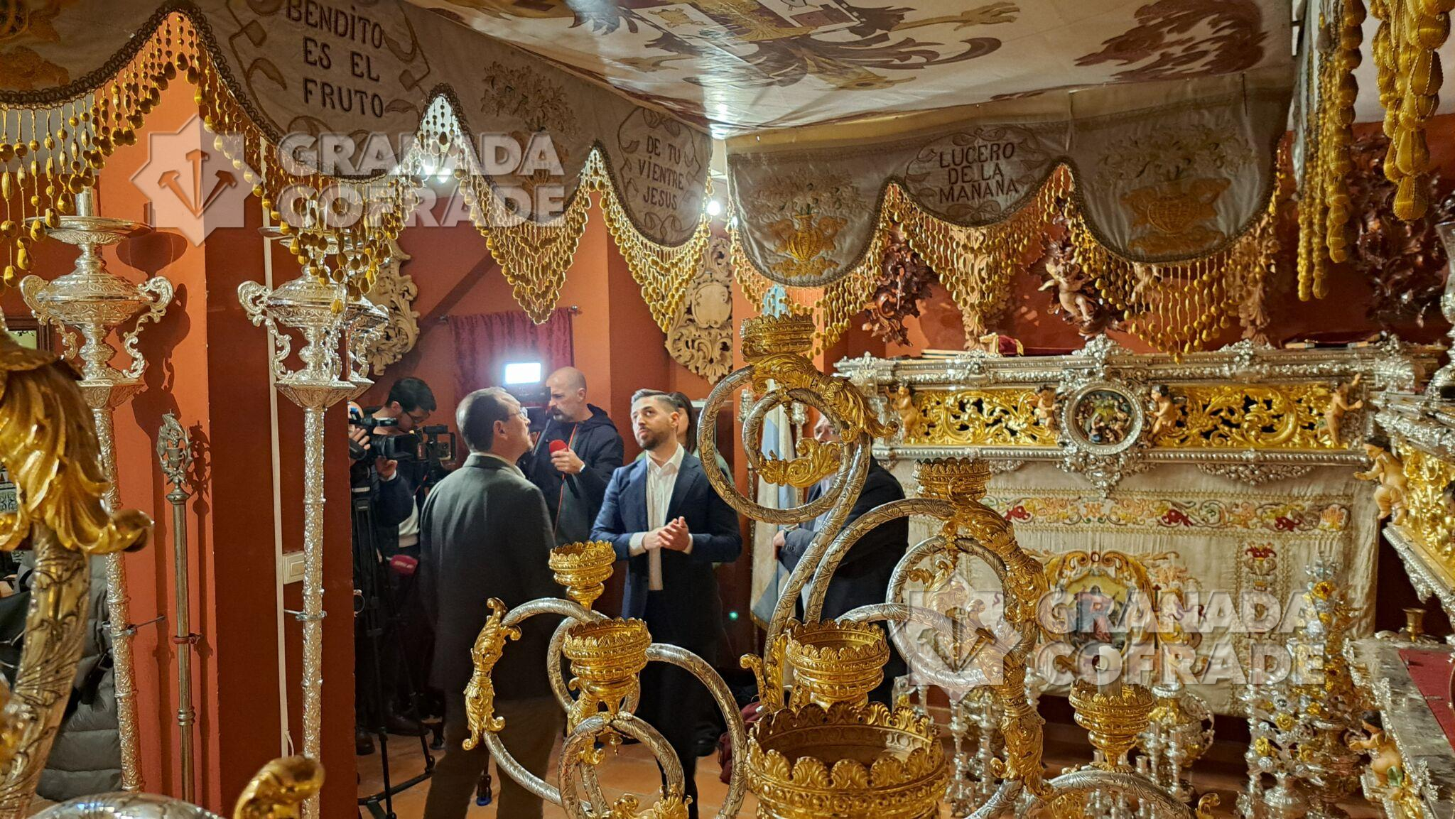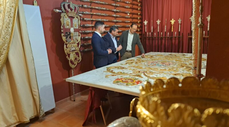 El delegado de Turismo, Cultura y Deporte de la Junta en Granada, Fernando Egea, acompañado por el hermano mayor de la cofradía de la Santa Cena Sacramental ha presentado la restauración el palio de la Virgen de la Victoria, que ha sido intervenido por el especialista Julio Alcaraz tras un año de trabajo en su taller en el municipio de Ogíjares, uno de los trabajos más singulares y con mayor personalidad de la Semana Santa granadina, con ochenta años de antigüedad y realizado entre 1946 y 1954  por la comunidad de Monjas dominicas del convento de la Piedad, de Granada.