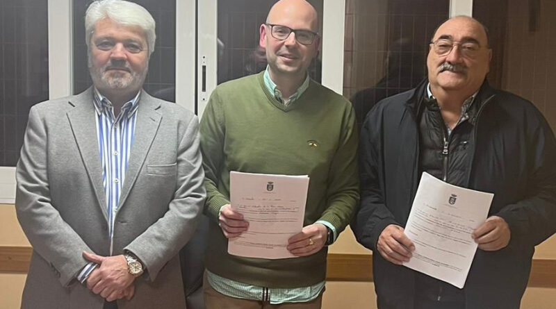 La firma del contrato la realizó el hermano mayor, Eduardo de la Plaza, y Paulino Barranco, miembro de la junta de gobierno, junto al director de la banda, Manuel Elvira.