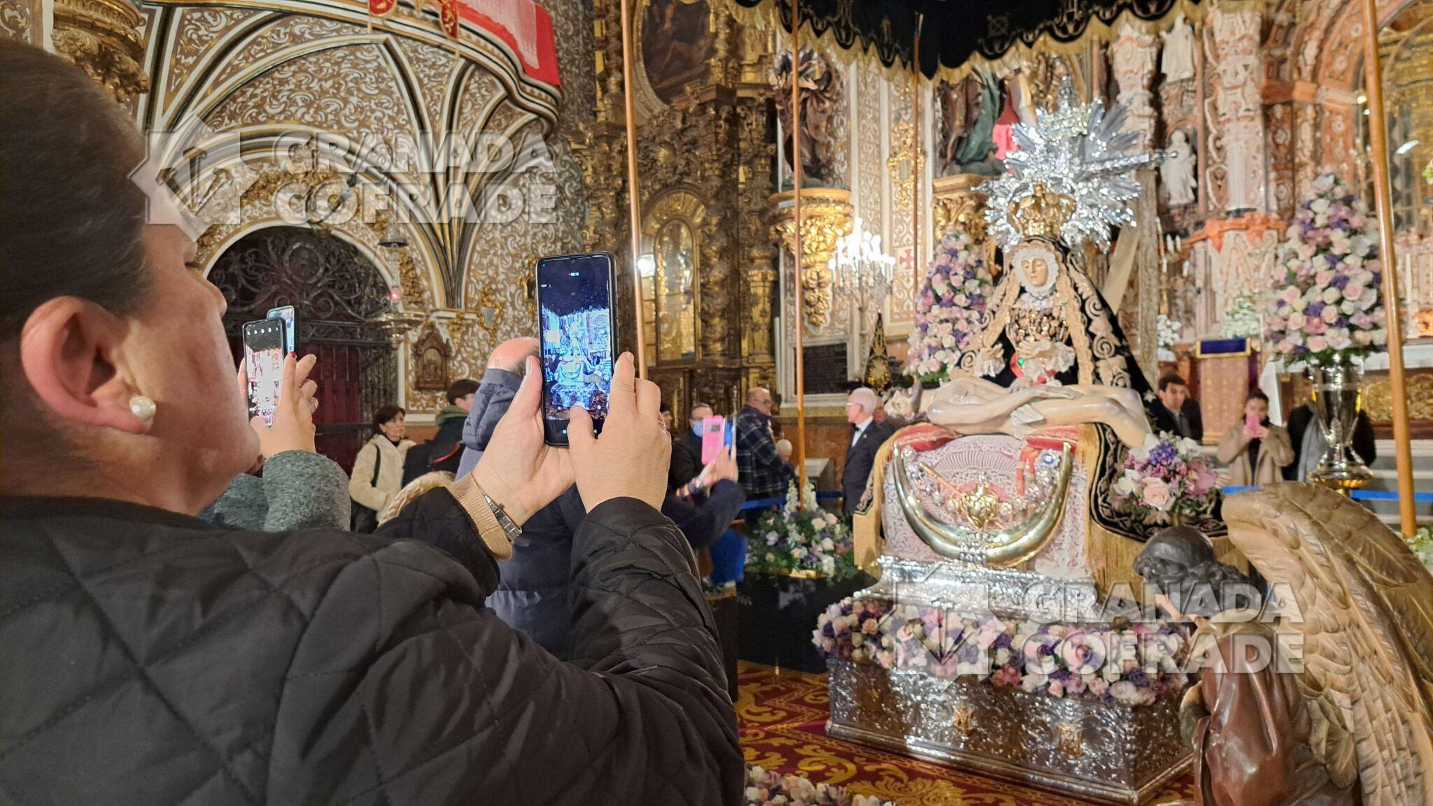 Enorme expectación entre los granadinos y devotos para contemplar a la Patrona tras la restauración de tres meses realizada por Dionisio Olgoso.