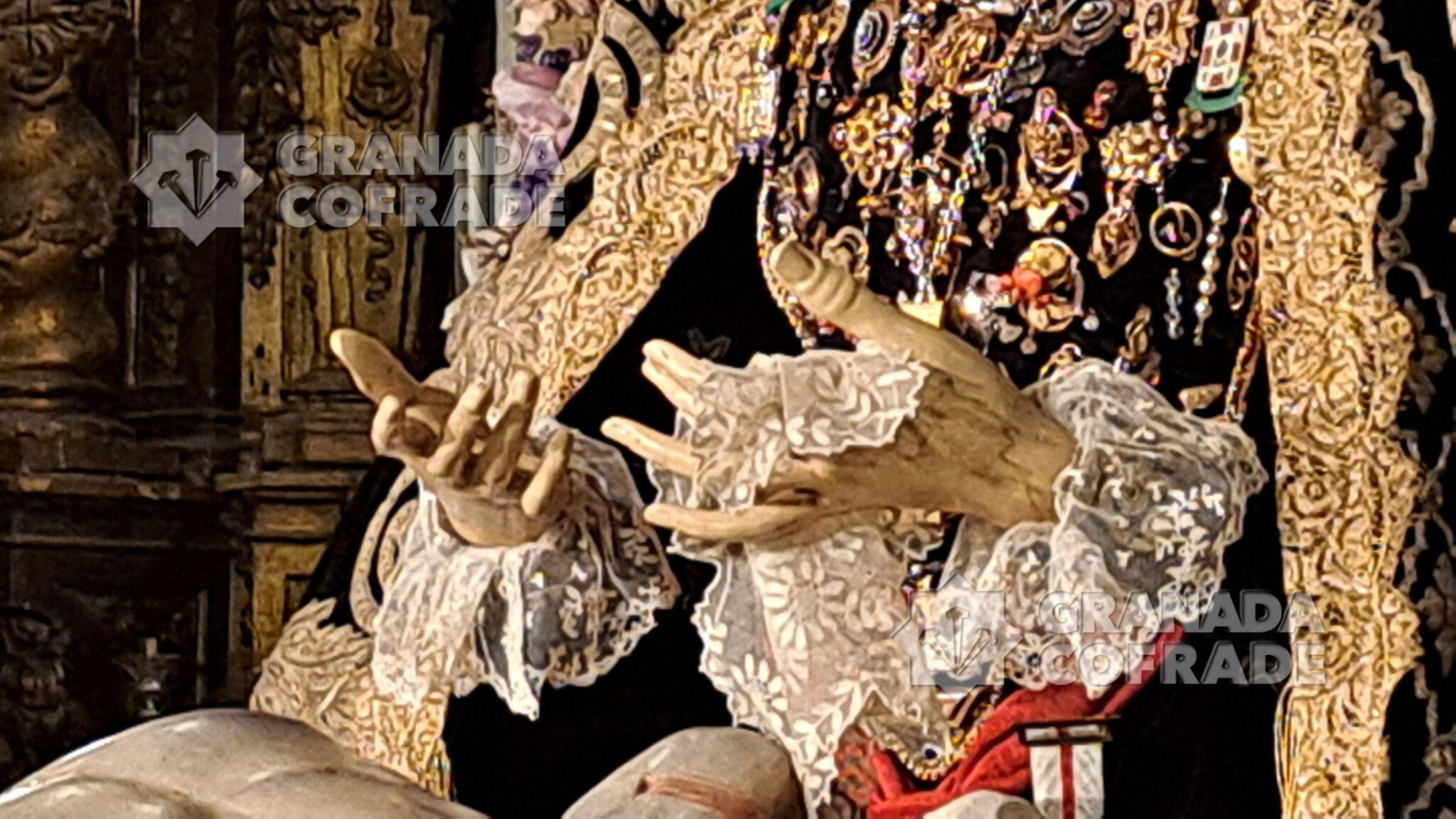 El estado de la imagen es bueno y «la intervención ha consistido principalmente en la consolidación de la policromía en la imagen y en la limpieza, lo que ha permitido que se vea «con un semblante más sonrosado y dulce», apunta el hermano mayor. A las nueve de la noche se interrumpió el paso de fieles para contemplar la imagen y rezarle porque se celebró una vigilia de jóvenes que estuvo presidida por el arzobispo de Granada, monseñor Gil Tamayo, cuya cruz pectoral que lucía en el pecherín de oro, fue regalo del prelado que a su vez había sido entregada al arzobispo por el Papa Benedicto XVI.