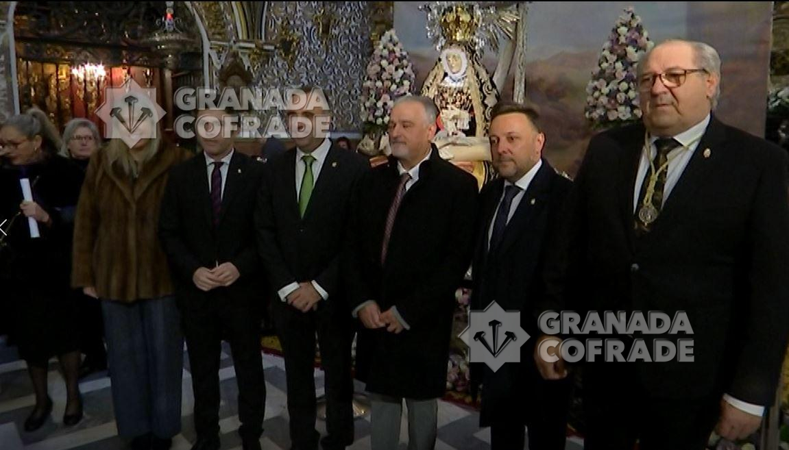 La celebración religiosa estuvo presidida por el arzobispo monseñor Gil Tamayo y concelebrada por varios sacerdotes de la parroquia, los canónigos del Sacromonte, David Cuerva y el Abad, Antonio Fernández, junto al párroco, Blas Gordo. En los primeros bancos se habían situado una serie de representaciones de toda la sociedad granadina, prácticamente, comenzando por el primer teniente de alcalde del Ayuntamiento de Granada, Jorge Saavedra; concejales del equipo de gobierno y de la oposición; el teniente general Jefe del Madoc, José Manuel de la Esperanza; el presidente de la Diputación, Francisco Rodríguez; el delegado de la Junta de Andalucía en Granada, Antonio Granados; el coronel de la Base Aérea de Armilla, Miguel Durán y el Subdelegado de Defensa en Granada, Federico González Vico; José Manuel García Sánchez, coronel de la Comandancia de la Guardia Civil en Granada, entre otras autoridades. Estaba también el presidente de la Real Federación de Cofradías, Armando Ortiz, y representantes de hermandades hermanadas con la de la Patrona de Granada.