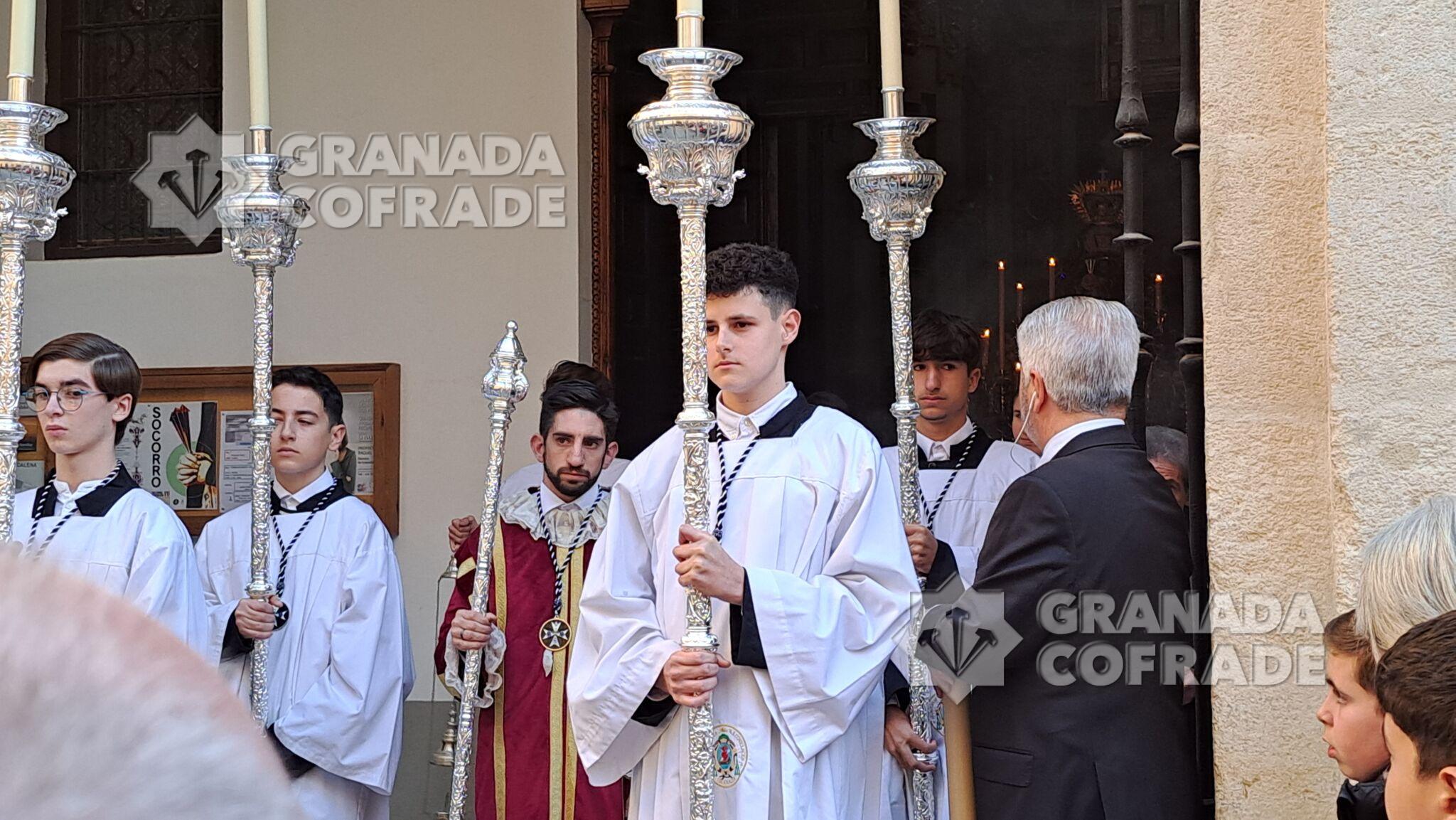 La Madre del Socorro estuvo precedida por un cortejo compuesto únicamente de representaciones, sin la participación de ninguna pareja de hermanos de luz. Representaciones entre las que se encontraba, la Hermandad de Jesús Despojado, la del Rescate, la de la Virgen de la Cabeza y una representación de la Federación de Hermandades y Cofradías de Penitencia de Granada.