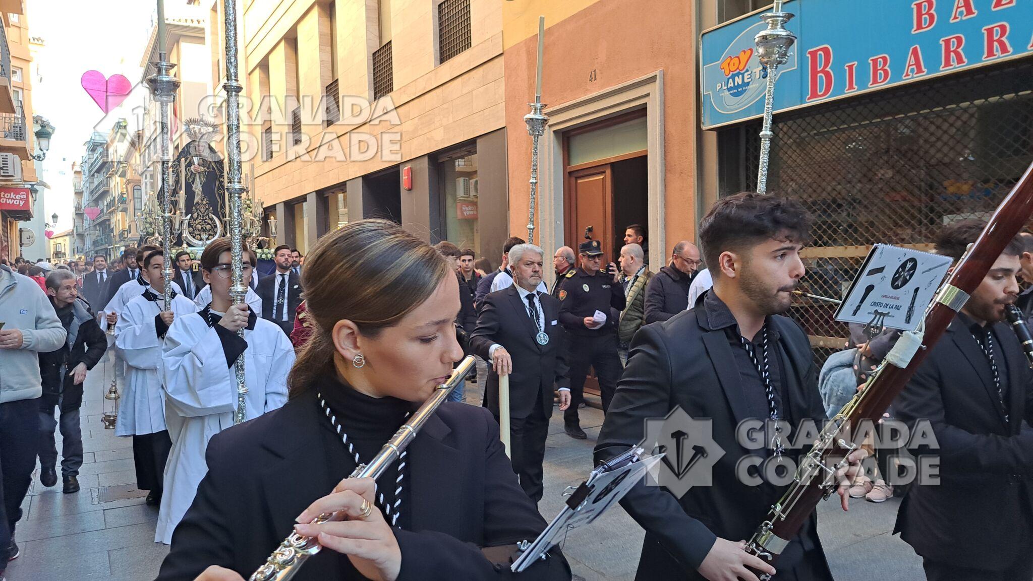 La música estuvo presente de la mano de la capilla musical «Cristo de la Paz» de la propia Archicofradía, y del cuarteto coral «Musiké» donde además, una vez llegado el traslado a la calle Gonzalo Gallas, la Banda y Unidad de Música «Ángeles» de Granada, pondría sus sones tras el paso de la Virgen del Socorro.