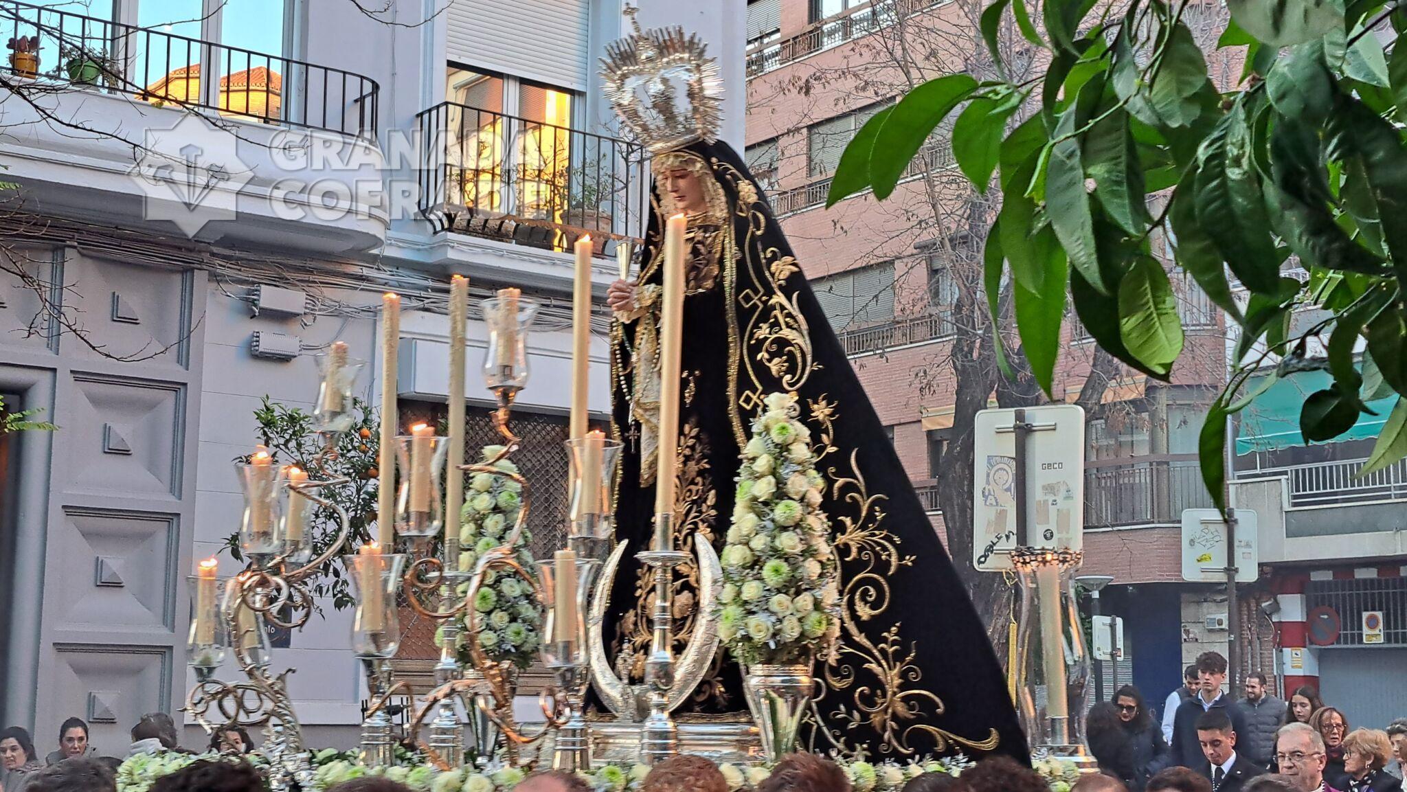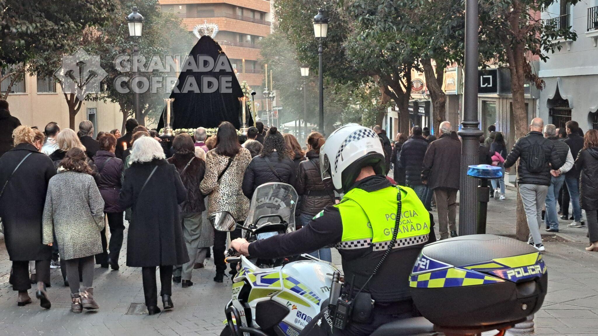 Numerosos granadinos y curiosos que no quisieron perderse esta primera salida de Nuestra Señora del Socorro, acompañaron a la nueva Titular de la Archicofradía por las calles de la capital.