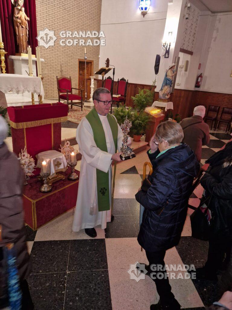 Durante la jornada de ayer la cofradía del Santísimo Cristo de la Sagrada Lanzada tuvo a la veneración de los fieles la reliquia que posé de fray Leopoldo de Alpandeire. Tras la celebraciones propias de la Eucaristía en los horarios habituales matutinos y vespertinos se dio a venerar la sagrada reliquia que durante la jornada se mantuvo en un lugar sobresaliente, a los pies del Altar Mayor del templo.