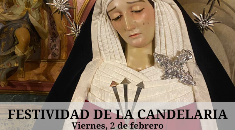 El próximo viernes 2 de febrero, conmemoramos la festividad de la Candelaria en la que celebramos la Presentación de Jesús en el Templo. Al finalizar la Eucaristía de las 19:00h, se procederá al rezo de la Oración de Consagración de los niños a la Santísima Virgen, para a continuación, acceder al camarín y ser pasados por su manto. Se realizará la presentación de los niños bautizados en los últimos años ante Nuestra Señora de los Dolores, Patrona de Maracena.