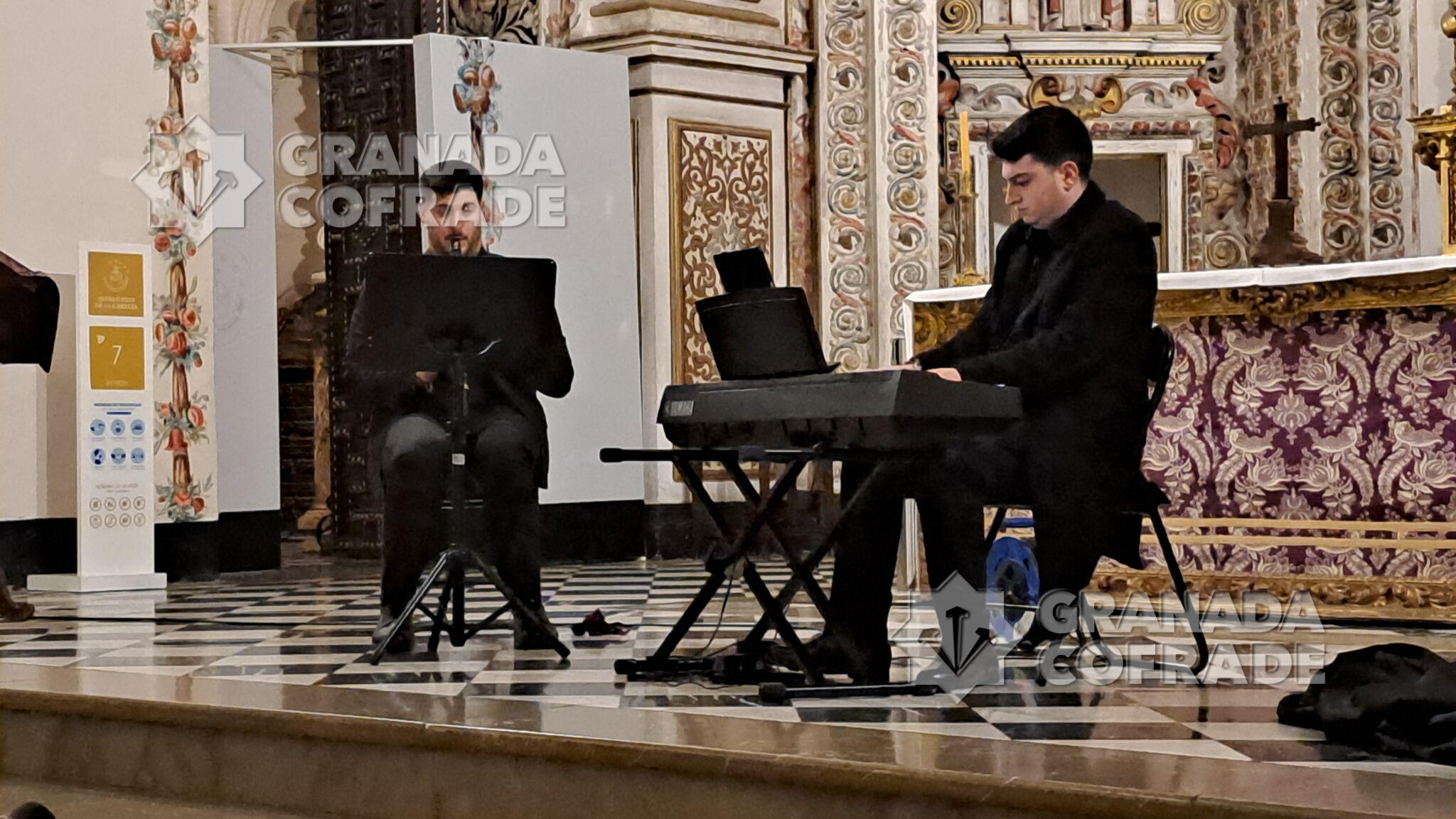 En el extraordinario templo del Monasterio de la Cartuja de Granada se desarrolló el concierto de Cuaresma que protagonizó el Dúo «Passio». Estuvo integrado por el clarinetista Ignacio López y el pianista Elías Santiago, ambos cofrades y virtuosos músicos que ofrecieron un concierto lleno de emoción, sentimiento y cualificación interpretativa y que fue muy reconocido por los más de ciento cincuenta asistentes que llenaron totalmente el templo cartujo.