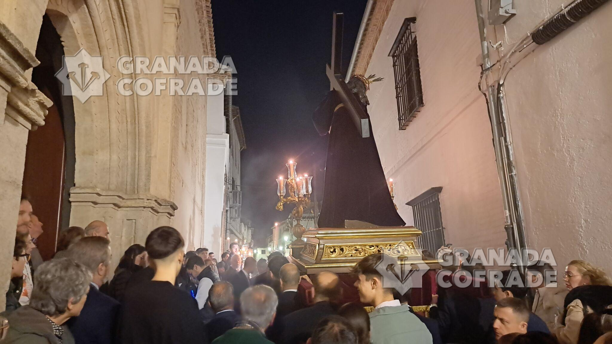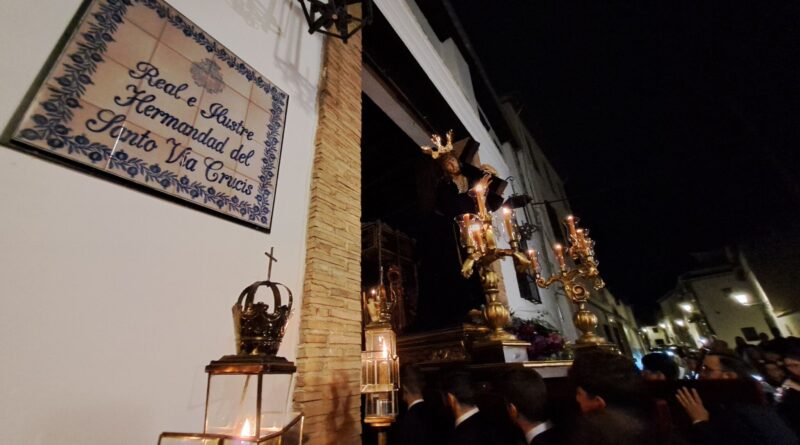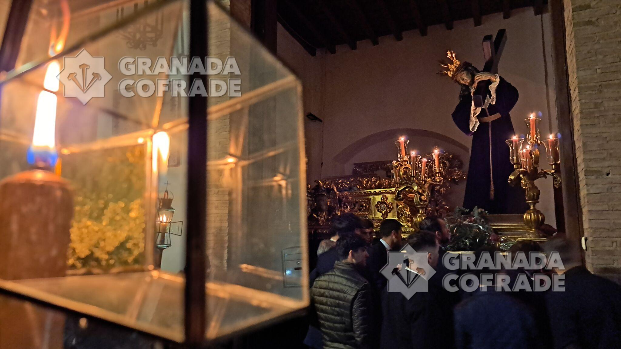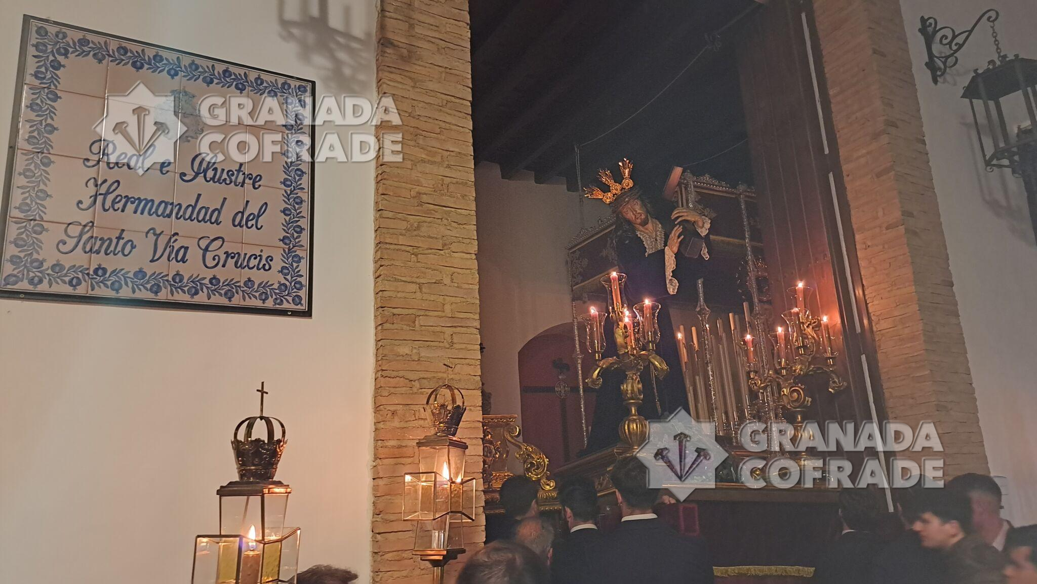 Una de las citas intimistas y dignas de vivir cada año es el traslado de los Titulares de la cofradía del Vía Crucis desde su sede del templo de San Juan de los Reyes hasta la cercana capilla de salida a escasos metros del templo rectoral. Un traslado que se ve precedido por las típicas cruces con cera de la hermandad decana y durante cuyo trayecto se procedió al rezo de la oración de las Cinco Llagas de Cristo.
