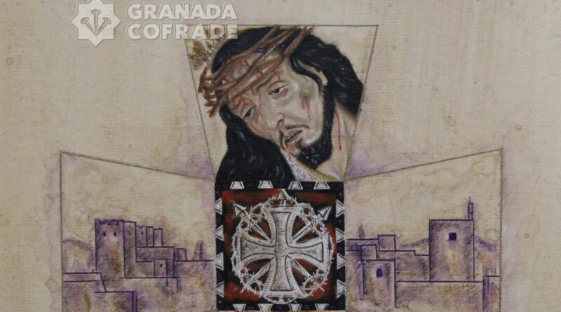 Alejandro Pérez es el autor de la venia de la Hermandad del Santo Vía Crucis para la estación de penitencia del próximo Martes Santo. La obra está realizada en técnica mixta sobre papel y el motivo central de la misma es el farol de cruz granadino que ha identificado a la cofradía a lo largo de su historia. En los brazos transversales de la misma, de izquierda a derecha, figura la Alhambra –en tonos morados coincidiendo con el color representativo de la Hermandad- y en el centro un fragmento de taracea que sigue el estilo de la cruz que carga Jesús de la Amargura con el escudo de la Hermandad.