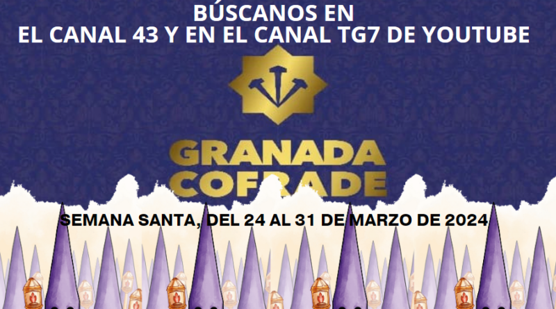 Es el momento en el que «GRANADA COFRADE» se transforma y se convierte en «COFRADE DIRECTO» para contarles en directo todo lo mejor que ocurre en las calles de Granada. Síguenos a través del canal 43 de la Televisión Digital y en el canal TG7, de YouTube, además de nuestras redes sociales, desde cualquier rincón de la Tierra. Queremos ser tus ojos, tus manos, tu olfato, tu oído y, también de alguna manera, el sabor de unos días que dan sentido a la vida de un cofrade.