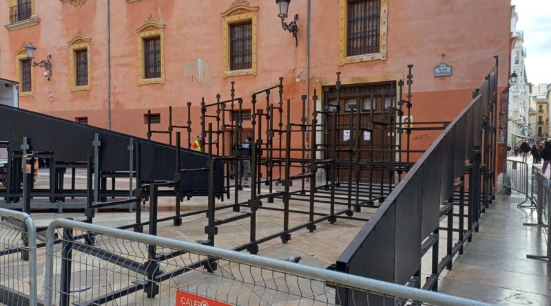 Los trabajos de montaje son realizados cada año por Calero&Aguilera que son los que tienen la concesión de las tribunas a través de la Federación de Cofradías.