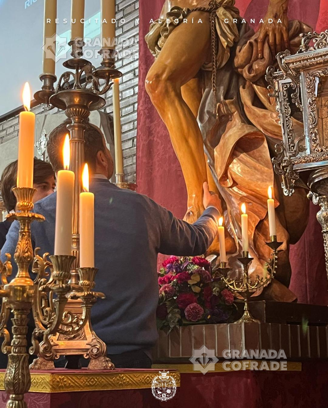 Al término de la celebración se procedió a devoto Besapiés al Santísimo Cristo Resucitado, que estuvo expuesto también durante toda la jornada del domingo recibiendo la visita de fieles y devotos.