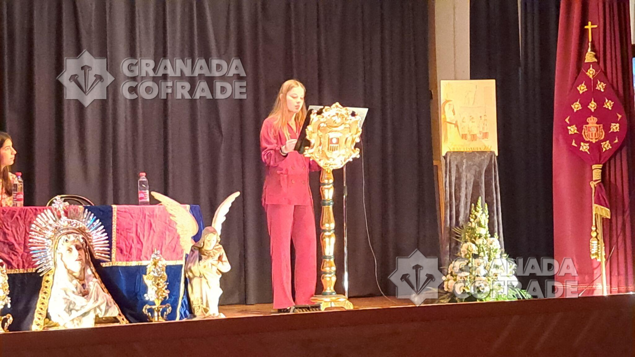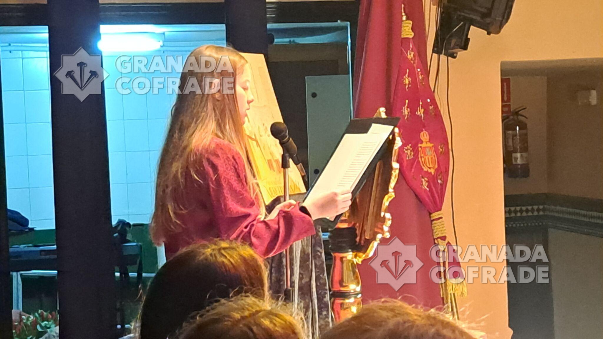 «Cuanta suerte tengo de ser cofrade en el seno de mi familia porque he aprendido que es la forma más bonita de ser cofrade», apuntó la pregonera. Comenzó el cortejo desde su Cruz de Guía apuntando que «donde vive la alegría allí se manifiesta Jesús», recordando los buenos momentos cofrades vividos en su vida, de hacerlo en Granada, en su cofradía de Jesús Despojado. Laura Espinel, en el compromiso de hermandad, afirmó para hablar de la advocación de Jesús de la Caridad que «Dios es siempre Caridad» reclamando la atención hacia «quien más lo necesita» y poniéndolo como «bandera del Padre». Habló del barrio del Realejo donde se enclava el colegio y recordó las palabras del fundador de la comunidad, el padre Zegrí, cuando decía que «todo para la humanidad, en Dios, por Dios y para Dios».