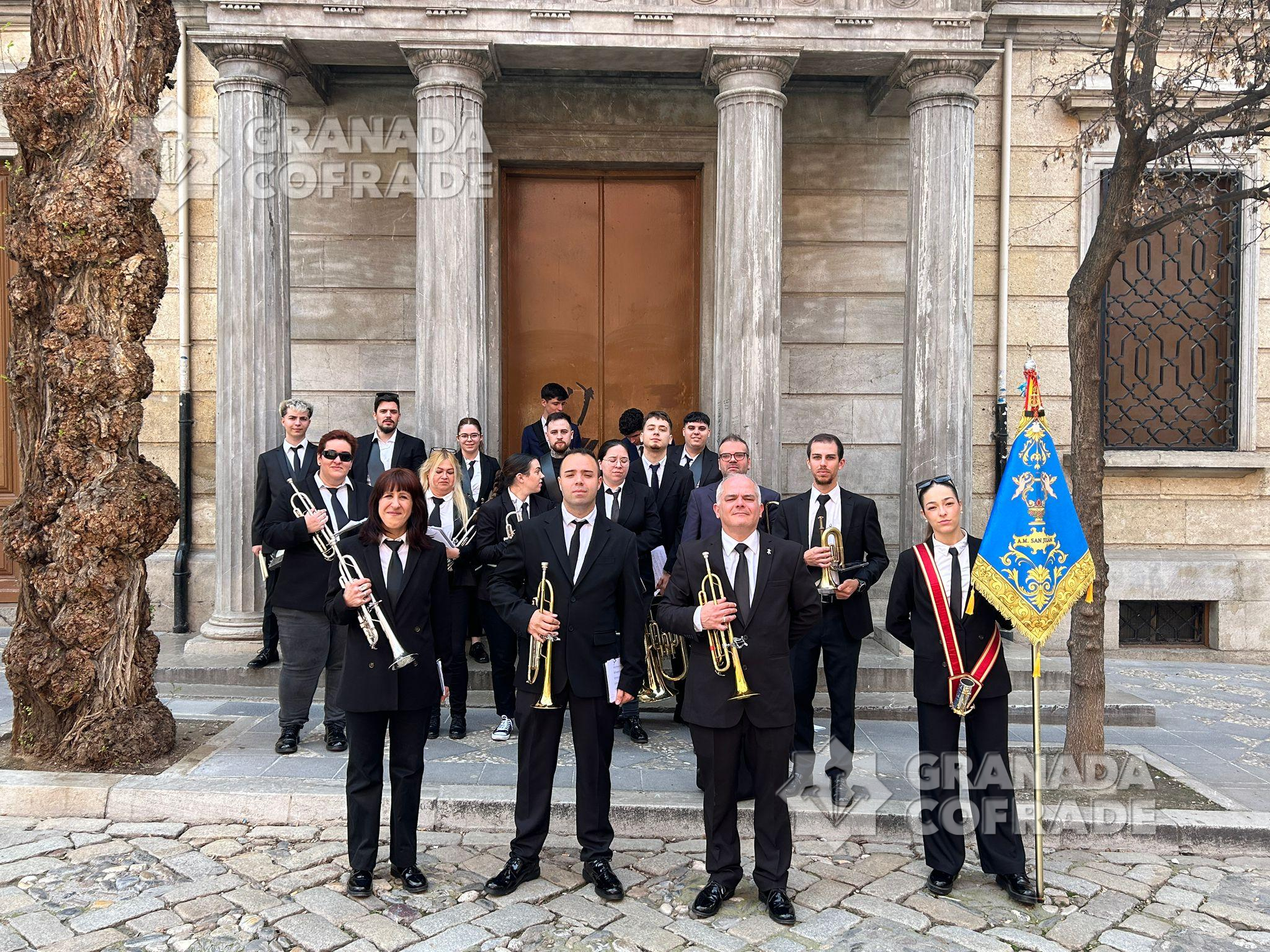 Un pregón que se vio completo con la intervención de la banda de San Julián, que acompaña cada año al paso infantil del Cristo de la Caridad que ofreció un concierto de marchas en la plaza del Padre Suárez.