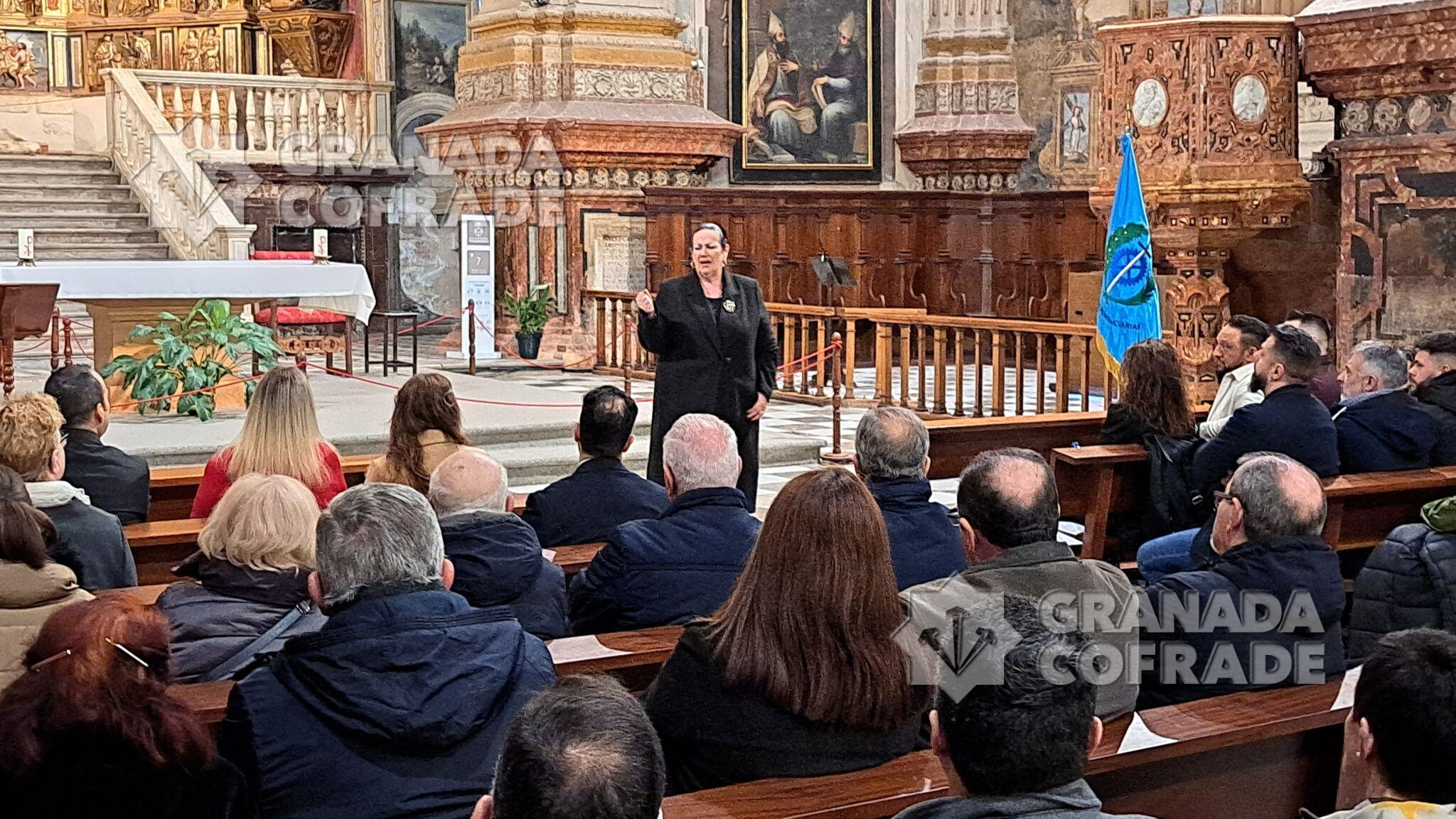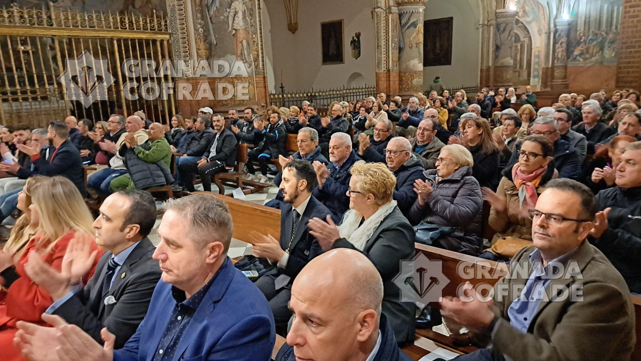 Una asistencia que casi llena el monasterio y que contó con la presencia de Cristina Buján, directora del CIS Matilde Cantos, una de las instituciones penitenciarias organizadoras de las Jornadas Cofrades y de la subdirectora de Tratamiento, Victoria Joya, así como del administrador del CIS, Rafael Roldán. Estuvieron representantes de ambas juntas de gobierno de las hermandades convocantes y de ex hermanos mayores, así como del Madoc, en cuya representación estaba Martín Zalvide Torrente, General de brigada, subdirector de enseñanza del MADOC.