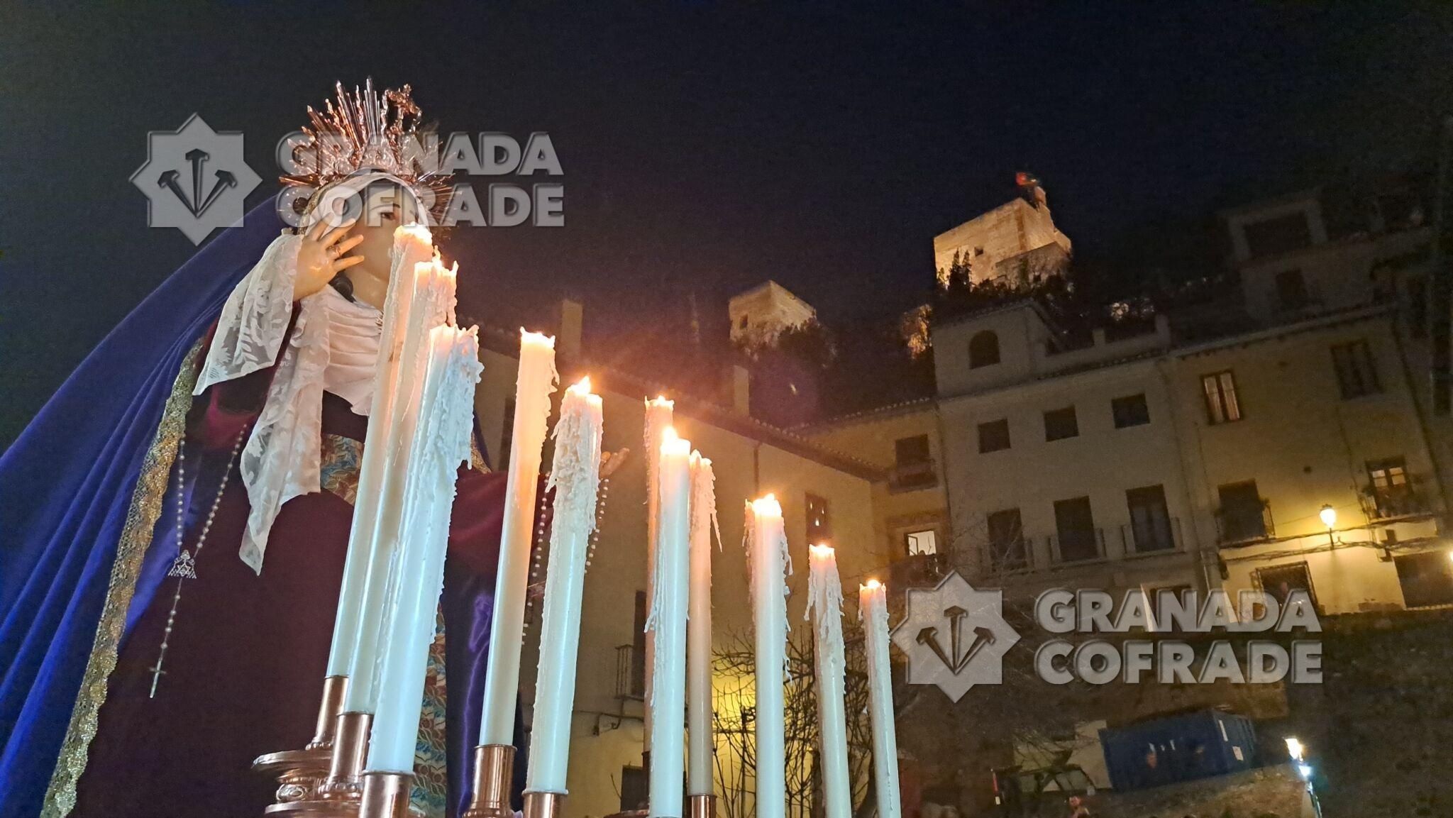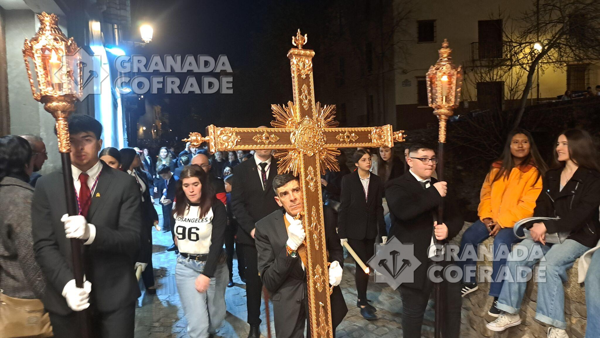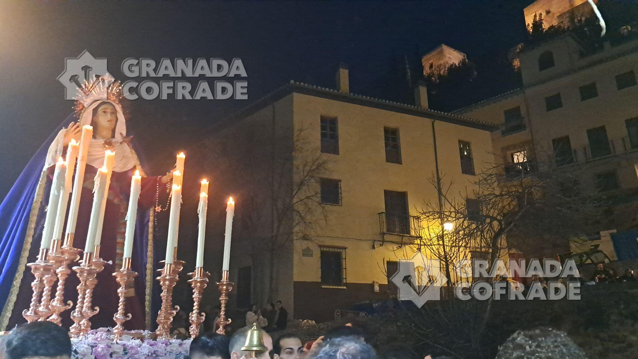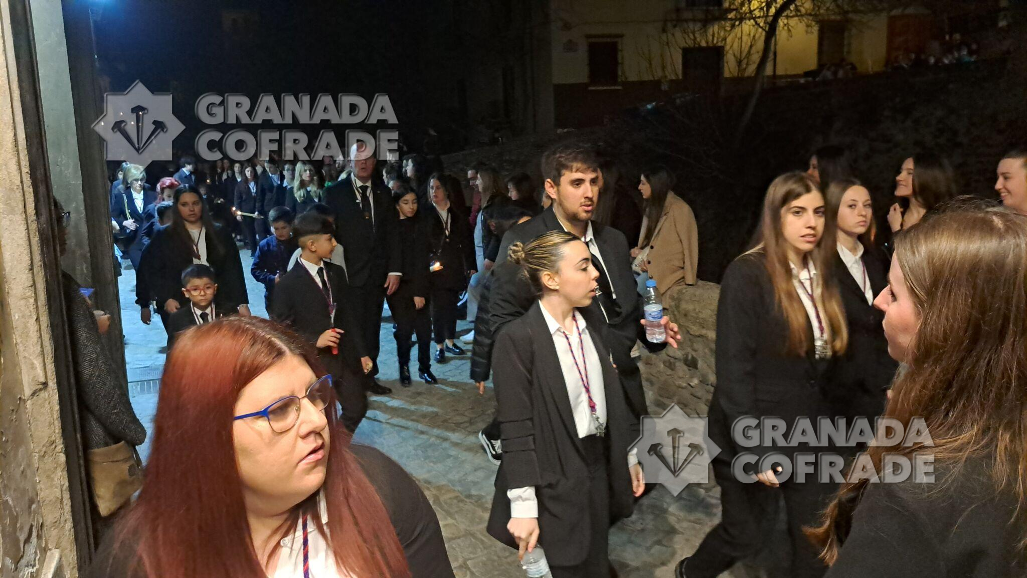 Los Titulares de la cofradía del Cristo del Consuelo (Gitanos) abandonaron su abadía del Sacromonte en la tarde de ayer para alcanzar el templo jesuita del Sagrado Corazón de Jesús, en la Gran Vía, hacia las nueve de la noche de ayer. Un traslado que concilió a buen número de hermanos que participaron en el cortejo de traslado, por el Camino del Sacromonte, Peso de la Harina y Cuesta del Chapíz hasta llegar a la Carrera del Darro donde esperaba numeroso público apostado junto al río para ver el cortejo de traslado. Se abría con la cruz abacial y en la presidencia estaba la hermana mayor, Elena Martínez, junto a miembros de su Junta de Gobierno y el consiliario y Abad del Sacromonte, Antonio Fernández Siles. Primero las andas del Cristo del Consuelo y después la Virgen del Sacromonte tuvieron que aminorar su paso por la Carrera del Darro, dado el número alto de granadinos y visitantes que contemplaron la escena, a una semana la llegada del Domingo de Ramos.